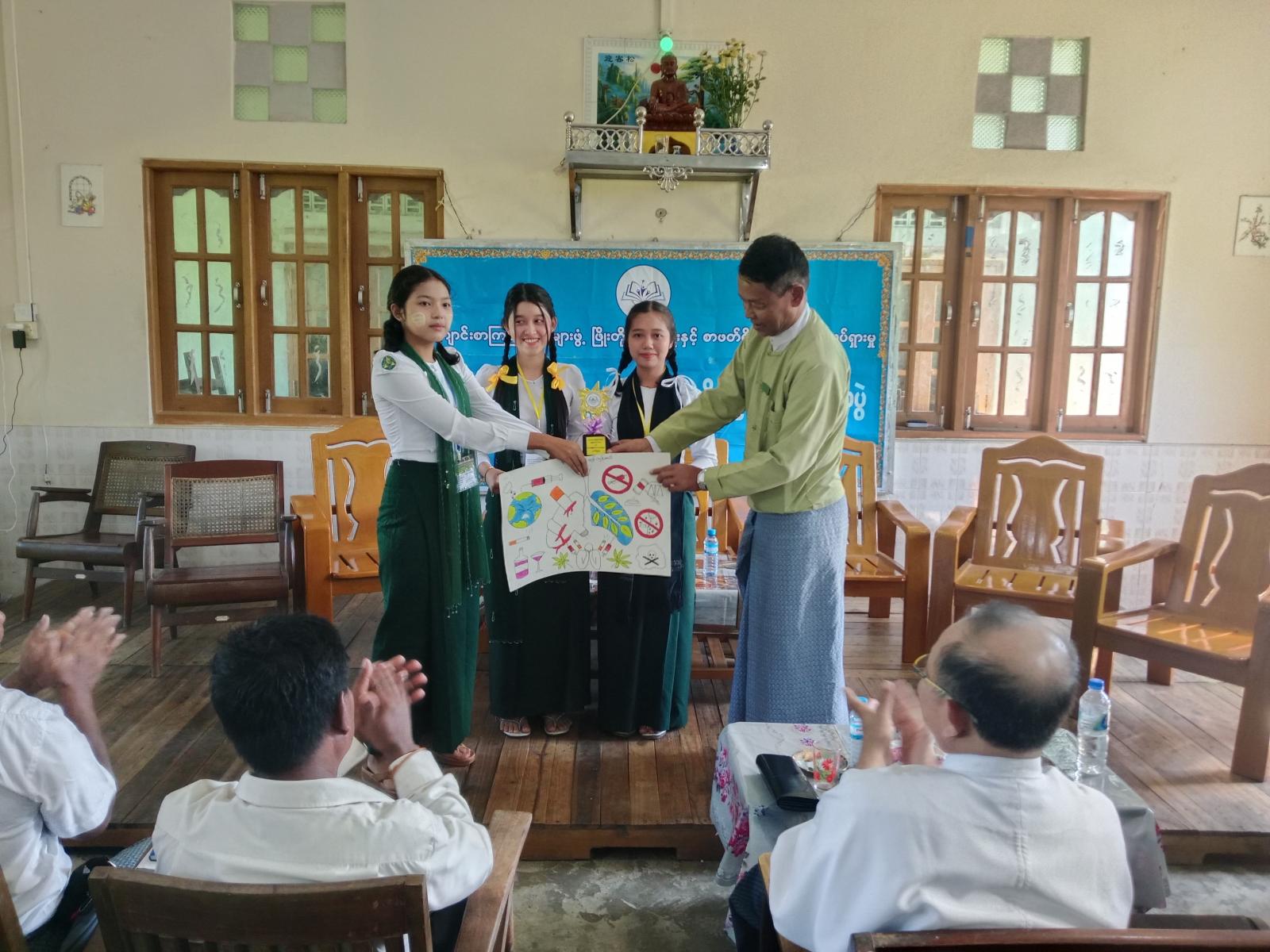 ဆက်လက်၍ ပြန်ကြားရေးနှင့်ပြည်သူ့ဆက်ဆံရေးဦးစီးဌာန ဒုတိယဦးစီးမှူး ဒေါ်ခိုင်ဇာထွန်းက စာဖတ်ရှိန်မြှင့်တင်ရေးလှုပ်ရှားမှု ကျင်းပပြုလုပ်ရခြင်း၏ ရည်ရွယ်ချက်နှင့် စာဖတ်ခြင်းကြောင့် ရရှိလာမည့်အကျိုးကျေးဇူးများအကြောင်းအားပြောကြားခဲ့ပြီး လူငယ်စကားဝိုင်း၊ စိတ်ကြိုက်ပန်းချီဆွဲပြိုင်ပွဲနှင့် စကားပုံဆက်ပြိုင်ပွဲကို ဆက်လက်ကျင်းပရာ ကျောင်းသား၊ ကျောင်းသူများက ဝင်ရောက်ယှဉ်ပြိုင်ခဲ့ကြသည်။ ထို့နောက်ပြိုင်ပွဲတွင် ဆုရရှိသူများကို တာဝန်ရှိသူများက ဆုများအသီးသီးပေးအပ်ခဲ့ပြီး အ.ထ.က(ဒါးပိန်)မှ တာဝန်ခံဆရာမ ဒေါ်ကြည်ဖြူထင်က ကျေးဇူးတင်စကား ပြန်လည်ပြောကြားခဲ့သည်။