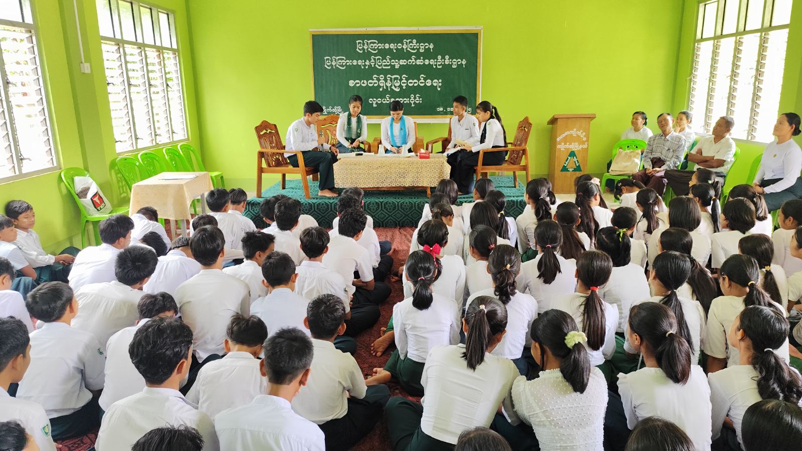 ရှေးဦးစွာ ကျောင်းအုပ်ဆရာမကြီး ဒေါ်ဖြူဖြူသင်းနှင့်စာပေချစ်သူများအသင်းအဖွဲ့ဝင် ဦးတင်ထွေးတို့က အမှာစကားပြောကြားကြပြီး ပြန်ကြားရေးနှင့်ပြည်သူ့ဆက်ဆံရေးဦးစီးဌာနမှ ဦးစီးအရာရှိ ဒေါ်သန်းသန်းမော်က လူငယ်စကားဝိုင်း ပြုလုပ်ပေးရသည့် ရည်ရွယ်ချက်နှင့် ကျောင်းသား၊ ကျောင်းသူများအနေဖြင့် ကျောင်းစာပညာရပ်များသာမက ဗလငါးတန်နှင့်ပြည့်စုံရန် အကျင့်စာရိတ္တ ကောင်းမွန်ပြီး အသိဉာဏ်ဖွံ့ဖြိုးသူများဖြစ်စေရန် ပြင်ပစာအုပ်၊ စာပေတို့ကိုလေ့လာခြင်းဖြင့် နိုင်ငံ့သားကောင်းလူငယ်များ ဖြစ်လာရေးတို့ကို ဆွေးနွေးပြောကြားခဲ့သည်။