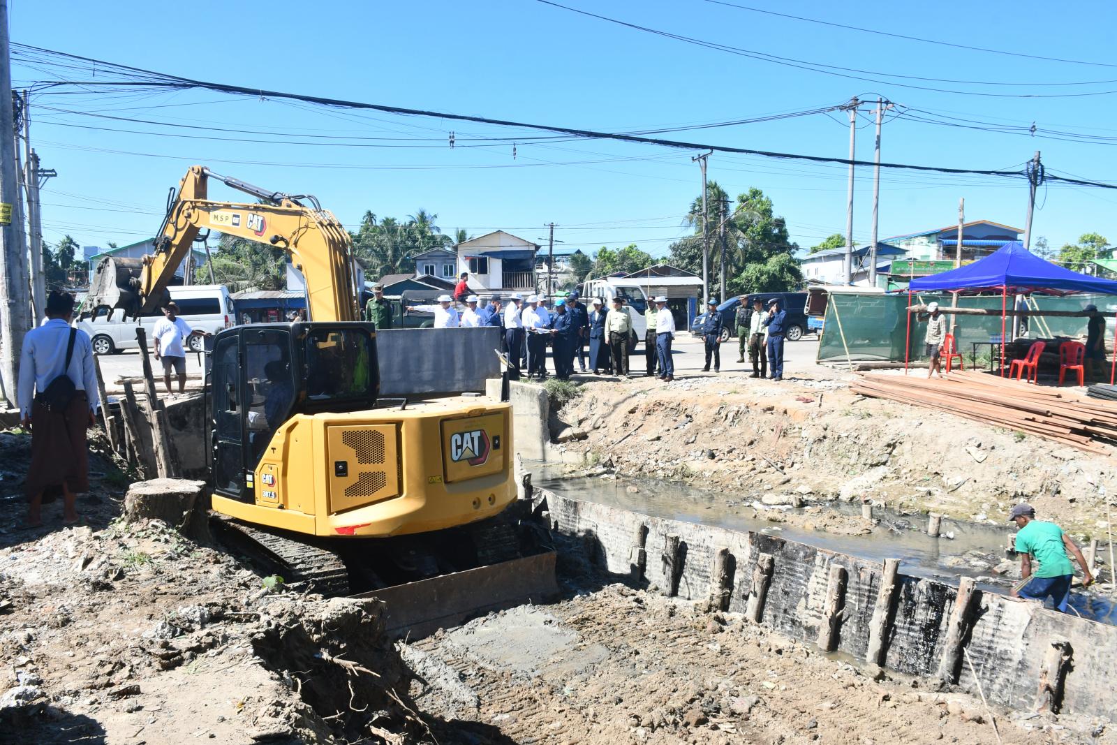 ယင်းနောက် ရန်ကုန်တိုင်းဒေသကြီး ဝန်ကြီးချုပ် ဦးစိုးသိန်းနှင့် အဖွဲ့သည် လှိုင်သာယာ (အရှေ့ပိုင်း) မြို့နယ်၊ အောင်ဇေယျတံတား တောင်ဘက်ခြမ်း လှိုင်မြစ် မြစ်ထွက်ပေါက် မြေအောက်ရေမြောင်း ဆောင်ရွက်နေမှုအားလည်းကောင်း၊ တပင်ရွှေထီးလမ်းရှိ အများပြည်သူအားကစားကွင်းနှင့် ကွင်းရှေ့တွင် မြက်များ ရှင်းလင်းနေအားလည်းကောင်း၊ ရွှေပြည်သာတံတားအဆင်းတွင် အရှည် (၁၆၀၀) ပေ ဇလားပုံ ရေမြောင်းဆောင်ရွက်နေမှုအား လည်းကောင်း ကြည့်ရှုစစ်ဆေးပြီး တိုင်းဒေသကြီး ဝန်ကြီးချုပ်က လိုအပ် သည်များကို မှာကြားသည်။