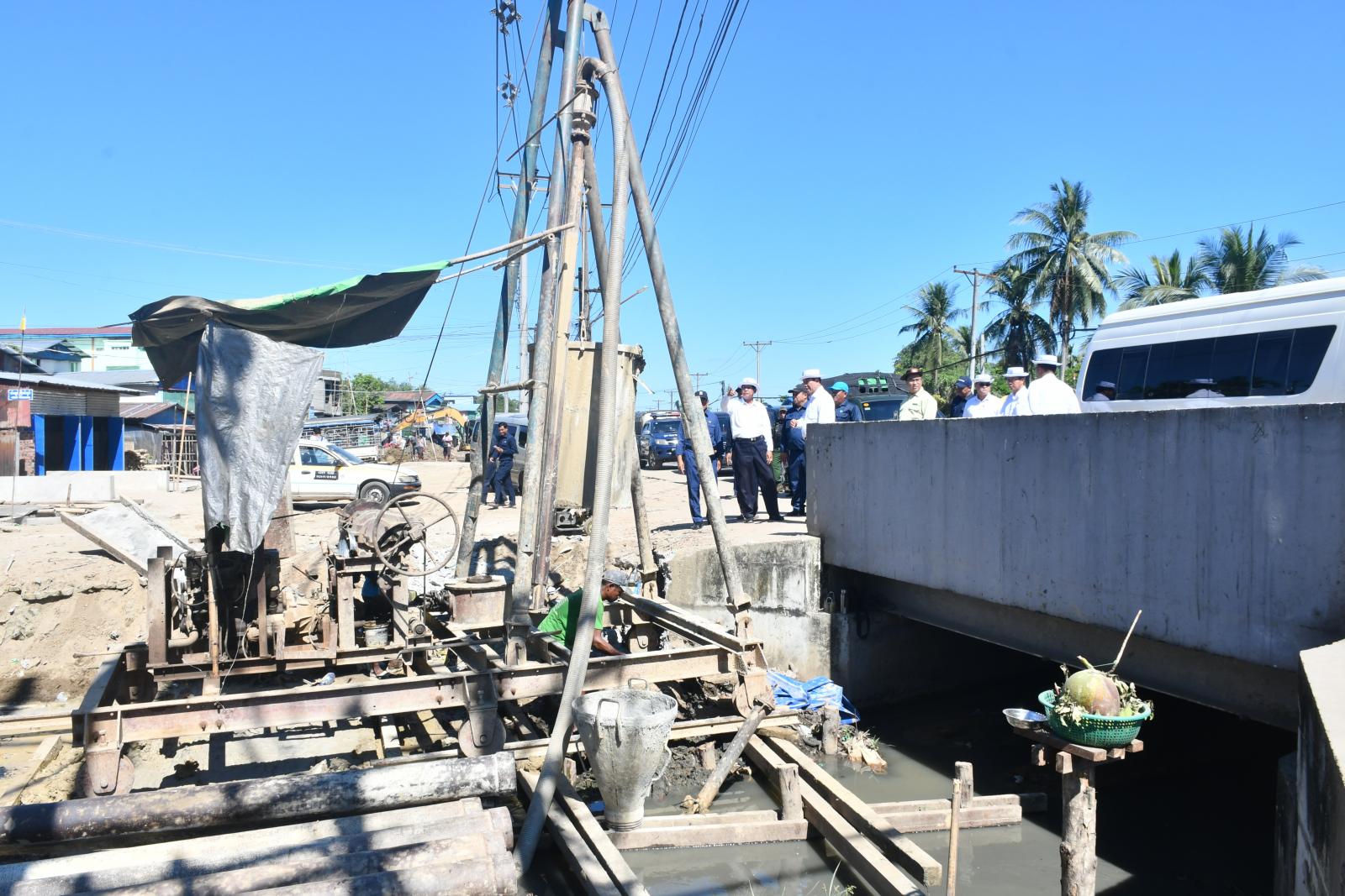 ဦးစွာ ရန်ကုန်တိုင်းဒေသကြီး ဝန်ကြီးချုပ် ဦးစိုးသိန်းနှင့် အဖွဲ့သည် လှိုင်သာယာ(အရှေ့ပိုင်း)မြို့နယ်နှင့် လှိုင်သာယာ(အနောက်ပိုင်း)မြို့နယ်များရှိရန်ကုန်-ပုသိမ်လမ်း ပီမိုးနင်းလမ်းနှင့် ကျန်စစ်သားလမ်းကြား ကွန်ကရစ်တံတား တည်ဆောက်နေမှုအားလည်းကောင်း၊ နဝဒေးဥယျာဉ်အိမ်ရာရှေ့တွင် ကွန်ကရစ် တံတားတည်ဆောက်ခြင်းလုပ်ငန်းအား လည်းကောင်း၊ ဗန်းမော်အတွင်းဝန်လမ်းနှင့် အမှတ်(၅)လမ်းထောင့် ကွန်ကရစ်တံတား တည်ဆောက်နေမှုအား လည်းကောင်း၊ တေးဥယျာဉ်လမ်းနှင့် သောင်ကြားလမ်းရှိ ကွန်ကရစ်တံတားတည်ဆောက်ခြင်းလုပ်ငန်းအားလည်းကောင်း၊ ရန်ကုန်အနောက်ပိုင်းနည်းပညာတက္ကသိုလ် အဝင်မုခ်ဦး တည်ဆောက်ခြင်းလုပ်ငန်းအားလည်းကောင်း၊ ရန်ကုန်အနောက်ပိုင်းနည်းပညာတက္ကသိုလ်အဝိုင်းမှ အနော်ရထာလမ်းဖြင့် ချိတ်ဆက်သည့် ဧရာဝတီလမ်းအရှည် (၅၉၀၀)ပေ၊ အကျယ်(၂၂) ကွန်ကရစ်လမ်း ခင်းကျင်းပြီးစီးမှုအားလည်းကောင်း ကြည့်ရှုစစ်ဆေးပြီး တိုင်းဒေသကြီး ဝန်ကြီးချုပ်က လိုအပ်သည်များကို မှာကြားသည်။