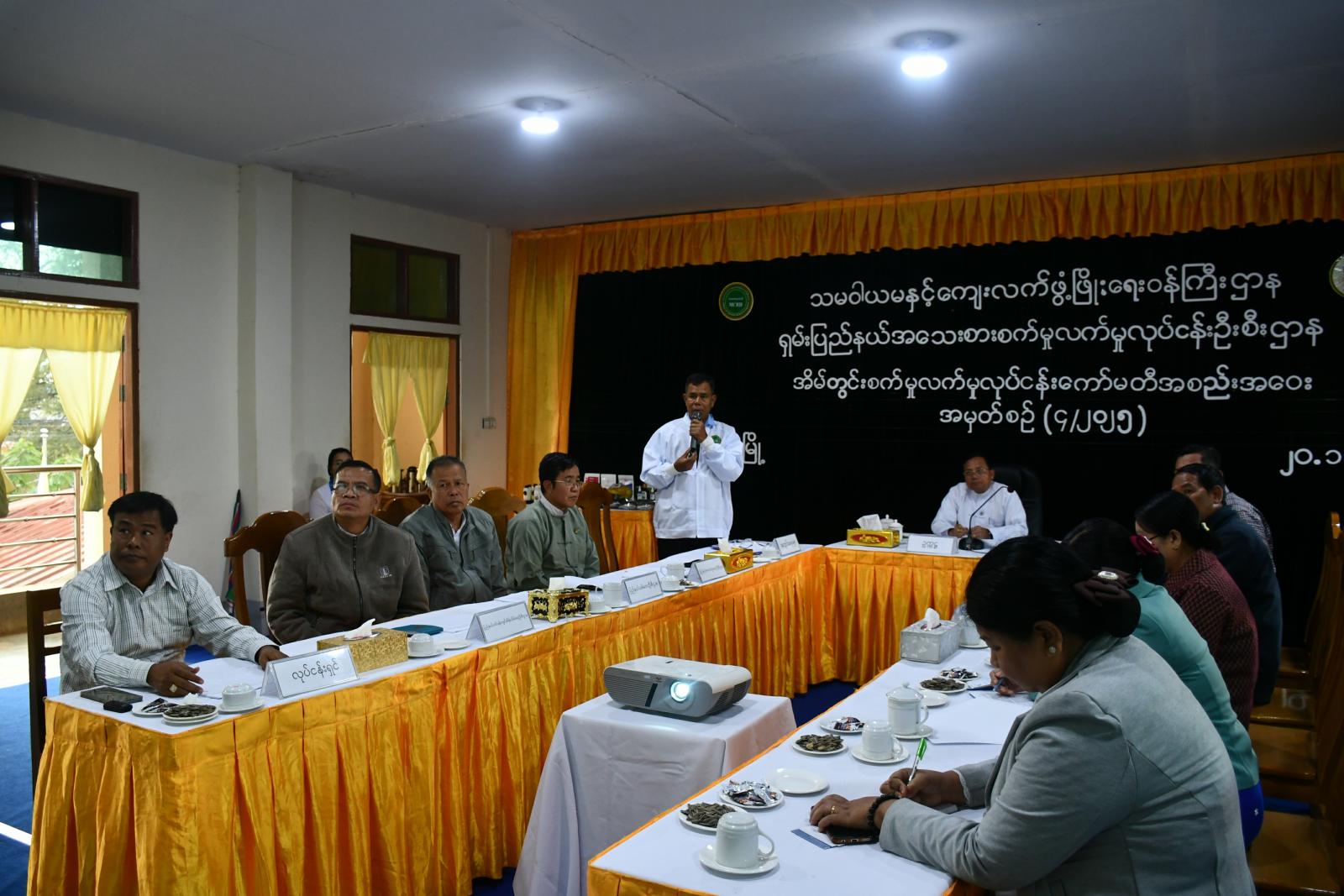 ရှမ်းပြည်နယ်(တောင်ပိုင်း)၊ သမဝါယမနှင့်ကျေးလက်ဖွံ့ဖြိုးရေးဝန်ကြီးဌာန၊ ရှမ်းပြည်နယ် အသေးစားစက်မှုလက်မှုလုပ်ငန်းဦးစီးဌာန၊ အိမ်တွင်းစက်မှုလက်မှုလုပ်ငန်းကော်မတီအစည်းအဝေးအမှတ်စဉ် (၄/၂၀၂၅-၂၀၂၆) ကို နိုဝင်ဘာ ၂၀ ရက် မွန်းလွဲ ၃ နာရီက ပြည်နယ်အသေးစားစက်မှုလက်မှုလုပ်ငန်းဦးစီးဌာနအစည်းအဝေးခန်းမ၌ ပြုလုပ်ခဲ့သည်။