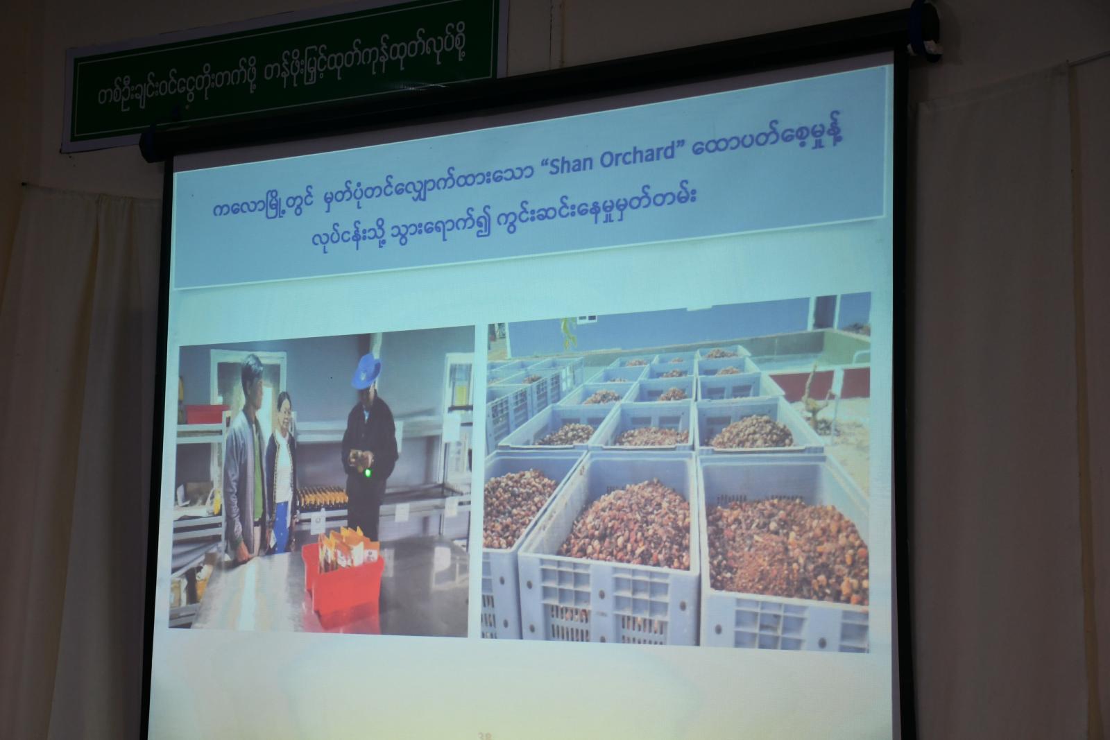 ထို့နောက် ရှမ်းပြည်နယ်၊ အသေးစားစက်မှုလက်မှုလုပ်ငန်းဦးစီးဌာန၊ ပြည်နယ်ဦးစီးမှူး ဦးစိုးနိုင်ထူးက လုပ်ငန်းမှတ်ပုံတင်များထုတ်ပေးမှုနှင့်ပတ်သက်၍ ပါဝါပွိုင့်ဖြင့် ရှင်းလင်းတင်ပြရာ ပြည်နယ်ဝန်ကြီးနှင့်ကော်မတီဝင်များက ဝိုင်းဝန်းဆွေးနွေးကြပြီး လုပ်ငန်းမှတ်ပုံတင်များကို ဥပဒေနှင့်အညီ စိစစ်ထုတ်ပေးခဲ့ကြောင်း သိရသည်။
