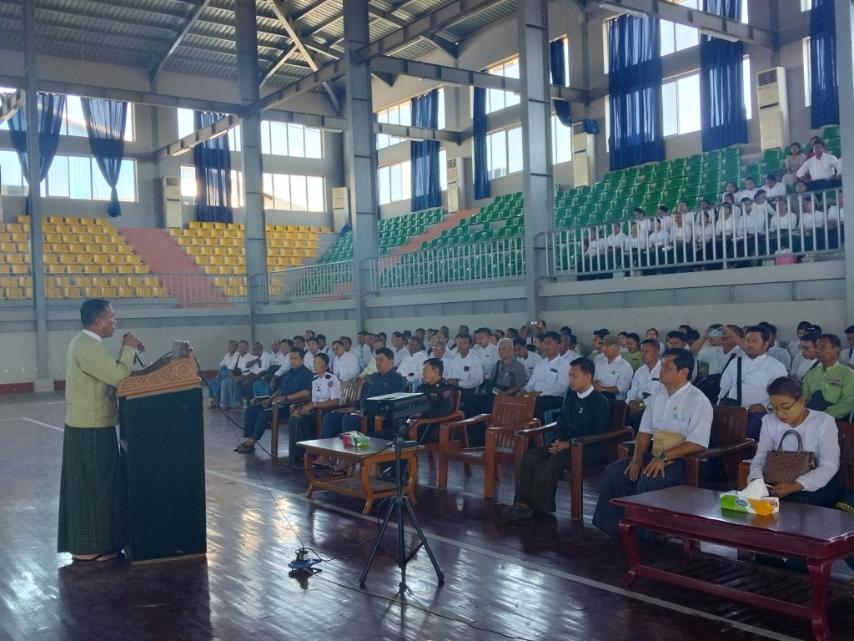 သင်တန်းဖွင့်ပွဲအခမ်းအနားတွင် မြို့နယ်စီမံခန့်ခွဲရေးနှင့်အုပ်ချုပ်ရေး ကော်မတီဥက္ကဋ္ဌ ဦးစန်းလွင်က အဖွင့်အမှာစကားပြောကြားပြီးမြို့နယ်ရွေးကောက်ပွဲကော်မရှင်အဖွဲ့ခွဲဥက္ကဋ္ဌ ဦးဝဏ္ဏက သင်တန်းဖွင့်လှစ်ရခြင်းရည်ရွယ်ချက် ရှင်းလင်းပြောကြားသည်။