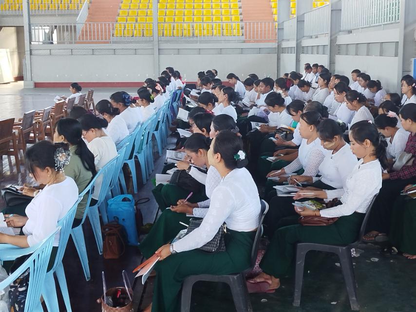 ဆက်လက်၍ သင်တန်းကိုစတင်ရာ သင်တန်းနည်းပြ (၁၀) ဦးက မဲရုံမှူး၊ ဒုတိယမဲရုံမှူးနှင့် မဲရုံအဖွဲ့ဝင်သင်တန်းသား၊ သင်တန်းသူဆရာ၊ ဆရာမ (၁၁၂)ဦးတို့ကို မဲရုံမှူး၊ ဒုတိယမဲရုံမှူးနှင့် မဲရုံအဖွဲ့ဝင်များ၏တာဝန်များ လုပ်ပိုင်ခွင့်များ ဆောင်ရန်ရှောင်ရန်များနှင့် MEVM မဲပေးစက် အကြောင်းအရာများ အသုံးပြုပုံအဆင့်ဆင့်တို့ကို စာတွေ့လက်တွေ့ ပို့ချပေးသွားမည်ဖြစ်ပြီး သင်တန်းကာလမှာ နိုဝင်ဘာလ (၂၀) ရက်နေ့မှ နိုဝင်ဘာ (၂၅) ရက်နေ့အထိ နံနက် ၉ နာရီမှ ညနေ ၄ နာရီထိ ဖြစ်ကြောင်း သိရသည်။