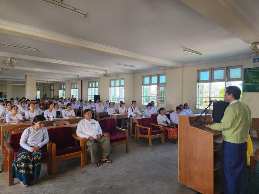 အလုံမြို့နယ်၊ သစ်တောရပ်ကွက်၊ ကမ်းနားလမ်း၊ အထက(၇)ကျောင်း၊ သဇင်ခန်းမ၌ မဲရုံမှူး၊ ဒုတိယမဲရုံမှူးနှင့် မဲရုံအဖွဲ့ဝင်များ၏ လုပ်ငန်းတာဝန်များ မြို့နယ်အဆင့်နည်းပြသင်တန်းကို နိုဝင်ဘာ ၁၉ ရက် နံနက် ၉ နာရီအချိန်ခန့်က ကျင်းပသည်။
