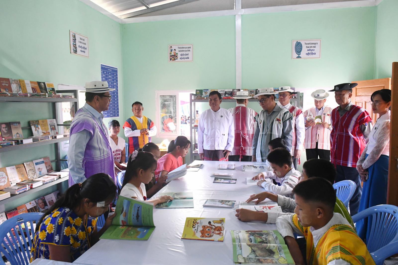 ထို့နောက် ပြည်နယ်ဝန်ကြီးချုပ်နှင့်တာဝန်ရှိသူများသည် စာကြည့်တိုက်အဆောက်အဦအား အမွှေးနံ့သာရည်များ ပက်ဖျန်းပေးကြပြီး စာကြည့်တိုက်အတွင်း သုတ၊ ရသစာအုပ်စာစောင်များအား ပညာရပ်အလိုက်ခင်းကျင်းထားရှိမှု၊ ကျောင်းသား၊ ကျောင်းသူများနှင့်ဒေသခံများ၏ စာပေလာရောက်လေ့လာဖတ်ရှုနေမှုများကို ကြည့်ရှုအားပေး၍ တာဝန်ရှိသူများအား လိုအပ်သည်များမှာကြားသည်။