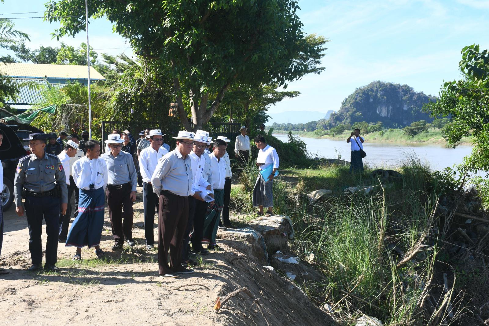 အလားတူ ကရင်ပြည်နယ်အတွင်းယမန်နှစ်မိုးရာသီကမိုးသည်းထန်စွာရွာသွန်းပြီး သံလွင်မြစ်ရေ နှစ်ကြိမ်တိုင်တိုင် ထူးကဲစံချိန်တင်မြင့်တက်မှုကြောင့် ကော့လှိုက်ကျေးရွာတွင် မြစ်ကမ်းပြိုကျမှုများ ဖြစ်ပွားခဲ့ပြီး ရေအရင်းအမြစ်နှင့်မြစ် ချောင်းများဖွံ့ဖြိုးတိုးတက်ရေးဦးစီးဌာန၊ ဒေသ(၁၁)၊ ကရင်ပြည်နယ်ဦးစီးမှူးရုံးမှ ကမ်းပြိုကာကွယ်ရေးလုပ်ငန်းများကို ဆောင်ရွက်လျက်ရှိရာ နိုဝင်ဘာလ ၂၂ ရက်နေ့ နံနက်ပိုင်းက ပြည်နယ်ဝန်ကြီးချုပ်ဦးစောမြင့်ဦး နှင့်တာဝန်ရှိသူများ ကွင်းဆင်း ကြည့်ရှုစစ် ဆေးခဲ့ကြသည်။