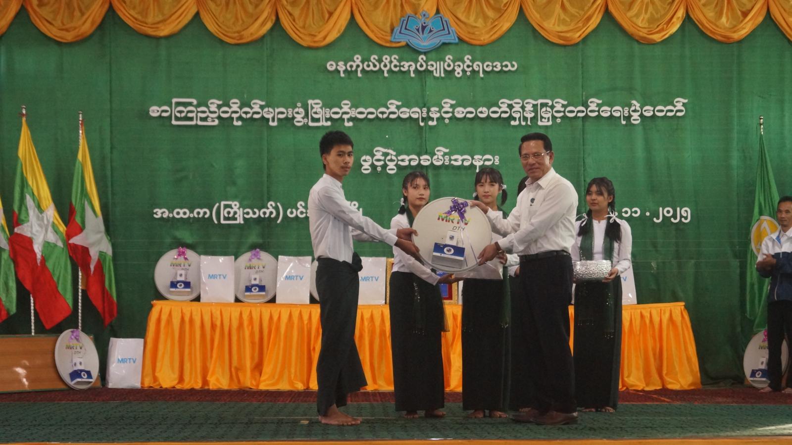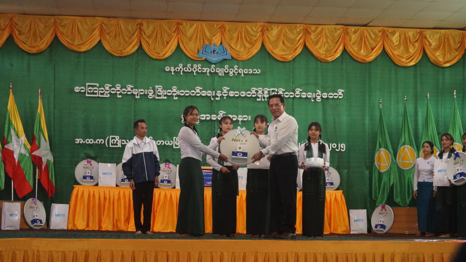 ဆက်လက်၍ မြန်မာနိုင်ငံစာကြည့်တိုက်များဖွံ့ဖြိုးတိုးတက်ရေး ပူးပေါင်းဆောင်ရွက်မှုကော်မတီဥက္ကဋ္ဌ၊ ပြန်ကြားရေးဝန်ကြီးဌာန ပြည်ထောင်စုဝန်ကြီးက DTH စလောင်း(၅၀)စုံ၊ သုတ/ရသစာအုပ်စာစောင်များ ပေးအပ်လှူဒါန်းရာ ဒေသပညာရေးမှူးက လက်ခံရယူပြီး၊ ရှမ်းပြည်နယ် စာကြည့်တိုက်များ ဖွံ့ဖြိုးတိုးတက်ရေးကြီးကြပ်မှုကော်မတီနယက သုတ/ရသ စာအုပ်စာစောင်နှင့် အလှူငွေများပေးအပ်ရာ ဓနုကိုယ်ပိုင်အုပ်ချုပ်ခွင့်ရဒေသဦးစီးအဖွဲ့ဥက္ကဋ္ဌနှင့် တာဝန်ရှိသူများမှ လက်ခံရယူခဲ့ကြပြီး၊ ဒေသဦးစီးအဖွဲ့ဥက္ကဋ္ဌနှင့် MRTV - 4 တို့မှ စာကြည့်တိုက်များဖွံ့ဖြိုးတိုးတက်ရေးနှင့် စာဖတ်ရှိန်မြှင့်တင်ရေးပွဲတော်အတွက် အလှူငွေများကို ပေးအပ်ရာ တာဝန်ရှိသူတစ်ဦးက လက်ခံရယူ၍ အလှူရှင်များကို ဂုဏ်ပြုမှတ်တမ်းလွှာများ ပြန်လည်ပေးအပ်ခဲ့ကြောင်း သိရပြီး၊ ယခုကျင်းပပြုလုပ်သည့် အခမ်းအနားတွင် DTH စလောင်းများကို ကံစမ်းမဲများဖွင့်ဖောက်ပေးခဲ့ကြောင်း၊ အခမ်းအနားကို ကျောင်းသား/ကျောင်းသူများမှ တေးသီချင်းများဖြင့် သီဆိုကပြဖျော်ဖြေပေးခဲ့ကြောင်းနှင့် အခမ်းအနားအပြီးတွင် ပြည်ထောင်စုဝန်ကြီးနှင့် လိုက်ပါလာကြသူများမှ ကာယ၊ ဉာဏပြိုင်ပွဲများ ဓါတ်ပုံနှင့်စာအုပ်ပြပွဲများကို လေ့လာကြည့်ရှုအားပေးခဲ့ကြကြောင်း သိရသည်။