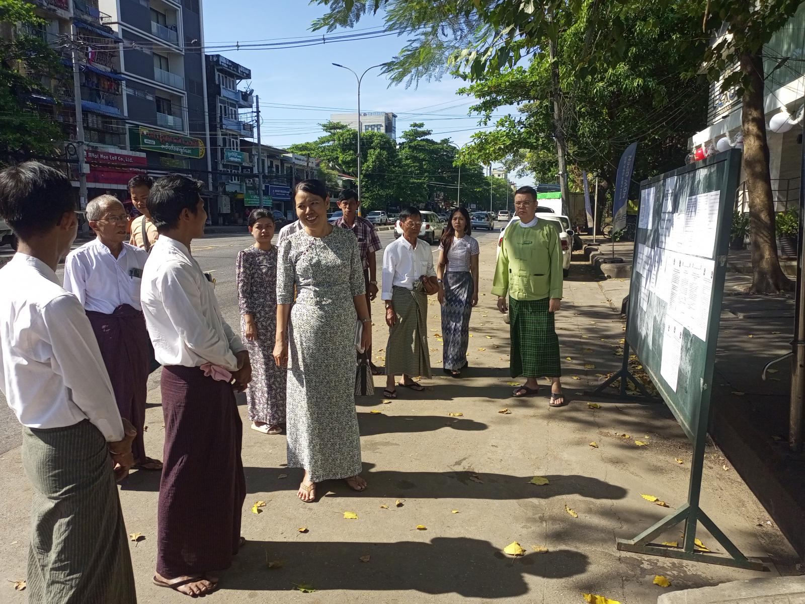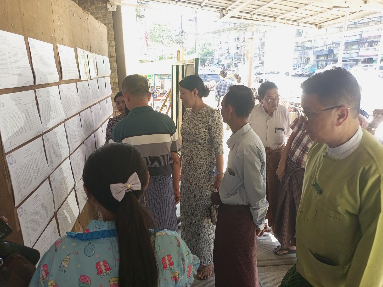 အဆိုပါ ဒုတိယအကြိမ်မဲစာရင်းကပ်ထားကြေညာမှုအား ရန်ကုန်တိုင်းဒေသကြီး၊ ပြန်/ဆက်ဦးစီးဌာန၊ ညွှန်ကြားရေးမှူး၊ ဒေါ်ခင်စောလင်း၊ မြို့နယ်စီမံခန့်ခွဲရေးနှင့်အုပ်ချုပ်ရေးကော်မတီဥက္ကဋ္ဌ ဥိးကံဝင်းနှင့်အဖွဲ့ဝင်များ၊ မြို့နယ်ရွေးကောက်ပွဲကော်မရှင်အဖွဲ့ခွဲဥက္ကဋ္ဌ ဦးမောင်မောင်နှင့် အဖွဲ့၀င်များက သွားရောက်ကြည့်ရှုခဲ့ပြီး လိုအပ်သည်များ မှာကြားခဲ့ပါကြောင်း သိရသည်။