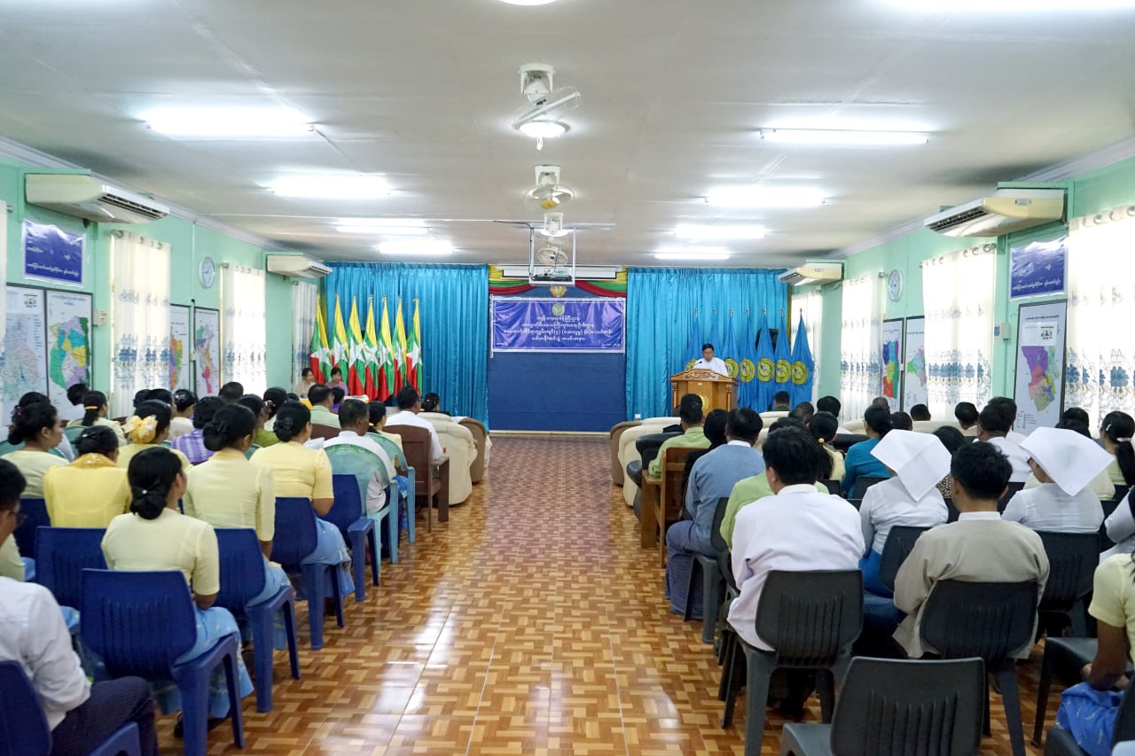 ကျန်းမာရေးဝန်ကြီးဌာန၊ ကုသရေးဦးစီးဌာန၏ လမ်းညွှန်မှု၊ မကွေးတိုင်းဒေသကြီး ကုသရေးဦးစီးဌာန ဦးဆောင်မှုဖြင့် တိုင်းပြည်သူ့ဆေးရုံကြီး ဆေးလူမှုဆက်ဆံရေးဌာနမှာ (၆) လကြာပို့ချခဲ့သည့် ဆေးဘက်ကျွမ်းကျင် (၄) (ဆေးလူမှု) ခြောက်လသင်တန်းဆင်းပွဲကို နိုဝင်ဘာလ ၂၂ ရက်နေ့မွန်းလွဲပိုင်းက တိုင်းဒေသကြီး ပြည်သူ့ကျန်းမာရေးနှင့်ကုသရေးဦးစီးဌာန အစည်းအဝေးခန်းမ၌ ကျင်းပသည်။