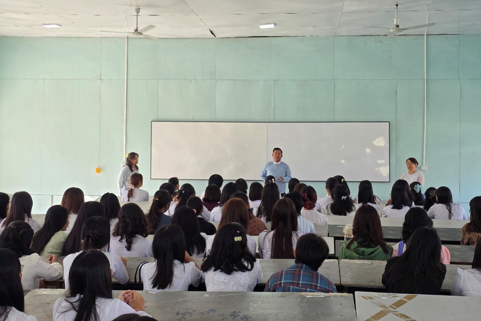 နည်းပညာတက္ကသိုလ်(ကျောက်ဆည်)၊ ၂၀၂၅-၂၀၂၆ ပညာသင်နှစ်၊ ဘွဲ့ကြို(ပထမနှစ်) တက်ရောက်လာသည့် မောင်မယ်သစ်လွင် ကျောင်းသား(၂၂၅)ဦးနှင့် ကျောင်းသူ(၁၅၈)ဦး စုစုပေါင်း (၃၈၃)ဦးတို့ကို ပါမောက္ခချုပ်(တာဝန်)နှင့်ဒုတိယပါမောက္ခချုပ်၊ ပညာရေးနှင့်စီမံခန့်ခွဲရေးအဖွဲ့ဝင်များမှ ဦးဆောင်ပြီး နိုဝင်ဘာ ၂၄ ရက် နံနက်(၈)နာရီခွဲက D1,D2 စာသင်ခန်းများတွင် လှိုက်လှဲနွေးထွေးစွာကြိုဆိုခဲ့ကြောင်း သိရသည်။