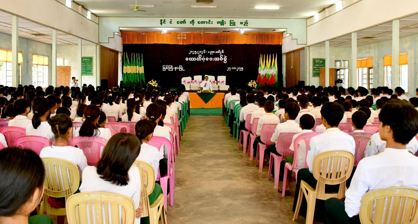 ဆက်လက်၍ ပြည်နယ်ဝန်ကြီးချုပ်၊ ပြည်နယ်တရားလွှတ်တော်တရားသူကြီးချုပ်နှင့် ပြည် နယ်လူမှုရေးရာဝန်ကြီးတို့က ထက်၊ လယ်၊ မူအဆင့်အလိုက် ပြဋ္ဌာန်းစာအုပ်များ၊ ကျောင်းဝတ်စုံများ နှင့် ကျောင်းသုံးဗလာစာအုပ်များကို ထောက်ပံ့ပေးအပ်ခဲ့ကြရာ ကျောင်းကော်မတီအဖွဲ့ဝင်တစ်ဦးက ကျေးဇူးတင်စကားပြန်လည်ပြောကြားခဲ့သည်။