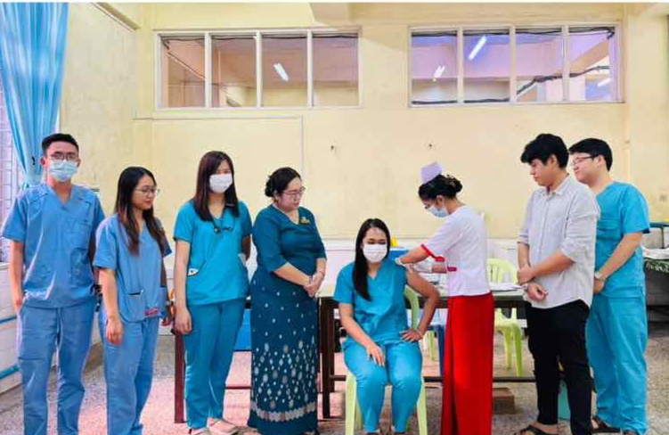 ထိုသို့ကာကွယ်ဆေးထိုးနှံရာတွင် မြို့နယ်ပြည်သူ့ကျန်းမာရေးဦးစီးဌာနမှ ဒေါက်တာနီနီအေး၏ကြီးကြပ်မှုဖြင့် ကျန်းမာရေးဝန်ထမ်းများက ဗဟိုအမျိုးသမီးဆေးရုံရှိ အသက်(၁၈) နှစ်နှင့်အထက် ကျန်းမာရေးဝန်ထမ်းများနှင့် မိသားစုဝင်များ၊ လူနာနှင့်လူနာစောင့်များအား ဦးတည်အုပ်စုအလိုက် ကျန်းမာရေးစစ်ဆေးမှုများပြုလုပ်ခြင်း၊ စာရင်းအချက်အလက်ကောက်ယူခြင်းများဆောင်ရွက်ပြီး ကိုဗစ်ကာကွယ်ဆေး (Pfizer JN1) ကို ထိုးနှံပေးခဲ့ကြောင်း သိရှိရသည်။