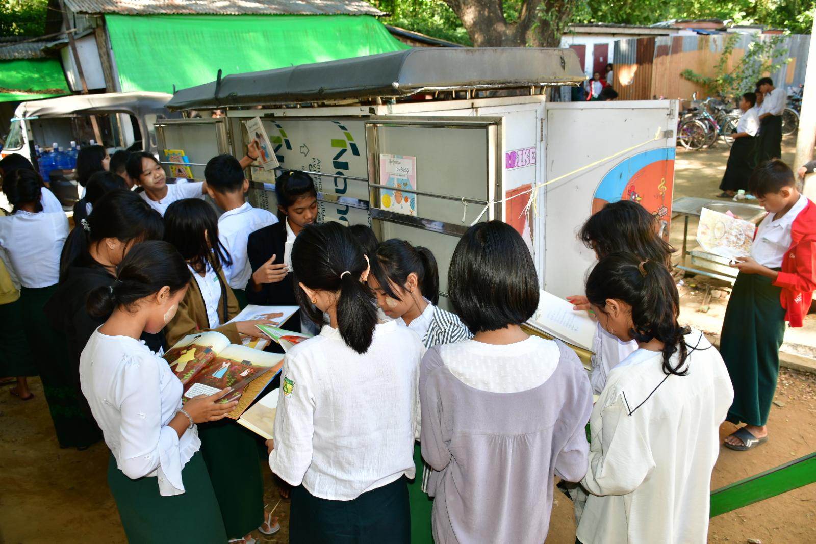 ထို့နောက် ကျောင်းသား၊ ကျောင်းသူများက ပြန်ကြားရေးနှင့်ပြည်သူ့ဆက်ဆံရေးဦးစီးဌာန နယ်လှည့်စာကြည့်တိုက်သုံးဘီးယာဉ်မှ သုတ/ရသစာအုပ် စာစောင်များနှင့် ခင်းကျင်းပြသထားသော မူးယစ်ဆေးဝါးအန္တရာယ်သိမှတ်ဖွယ်နှင့် ကလေးအလုပ်သမားပပျောက်ရေး၊ စာဖတ်ရှိန်မြှင့်တင်ရေးအသိပညာပေး နံရံကပ်စာစောင်များကို စိတ်ဝင်တစား ဖတ်ရှုလေ့လာကြကြောင်း သိရသည်။