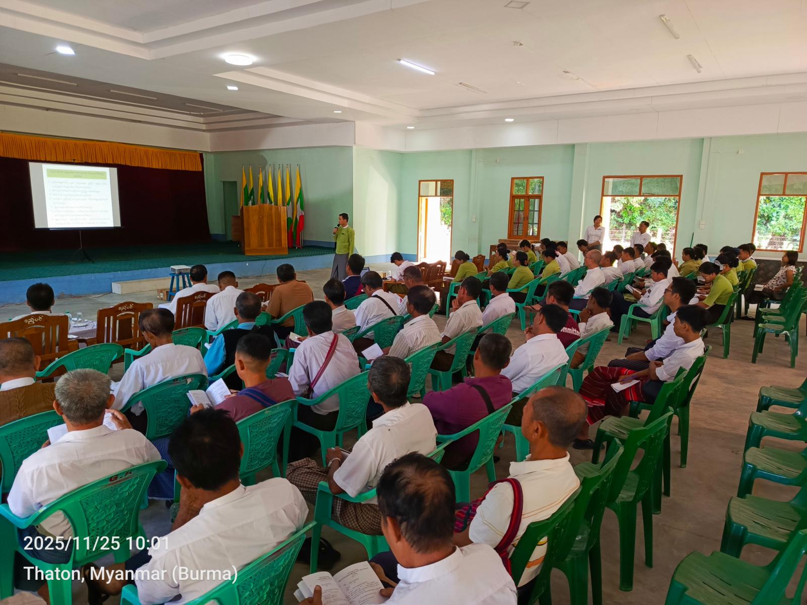 မွန်ပြည်နယ်၊ သထုံမြို့နယ်ရွေးကောက်ပွဲကော်မရှင်အဖွဲ့ခွဲမှစီစဉ်ကျင်းပသည့် မြို့နယ်အဆင့် ရပ်ကွက်နှင့် ကျေးရွာအုပ်စုကော်မရှင်အဖွဲ့ခွဲ လုပ်ငန်းလမ်းညွှန် ဆင့်ပွားသင်တန်း ဖွင့်ပွဲအခမ်းအနားကို ယနေ့ နံနက်က လိပ်အင်းရပ်ကွက်ရှိ မြို့နယ်စုပေါင်းရုံးခန်းမ၌ ကျင်းပပြုလုပ်သည်။