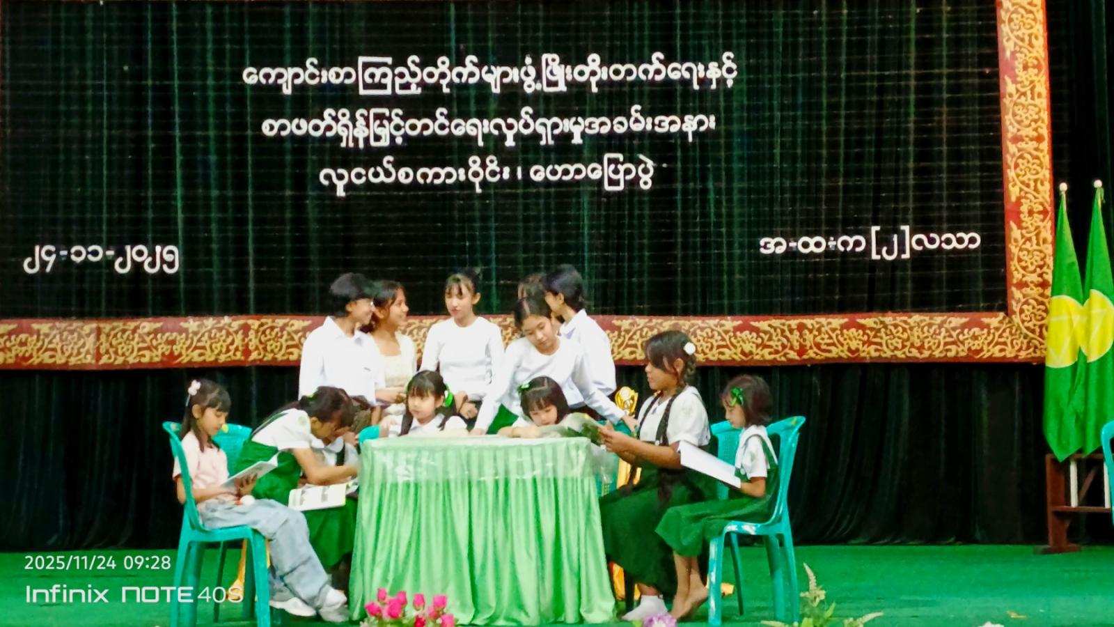 ရန်ကုန်တိုင်းဒေသကြီး၊ ကျောက်တံတားခရိုင်၊ လသာမြို့နယ် ပြန်ကြားရေးနှင့်ပြည်သူ့ဆက်ဆံရေးဦးစီးဌာနနှင့် အခြေခံပညာဦးစီးဌာနတို့ ပူးပေါင်းကျင်းပသော စာဖတ်ရှိန်မြှင့်တင်ရေးလှုပ်ရှားမှု အခမ်း အနားကို ယနေ့ နံနက် ၈ နာရီက အမှတ်(၂) အခြေခံပညာအထက်တန်းကျောင်း မြညီလာခန်းမတွင် စည်ကားသိုက်မြိုက်စွာ ကျင်းပပြုလုပ်ခဲ့သည်။