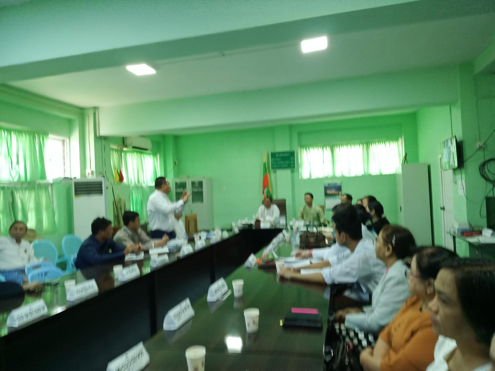 ရှေးဦးစွာ ခရိုင်စီမံခန့်ခွဲရေးနှင့် အုပ်ချုပ်ရေးကော်မတီအဖွဲ့ဝင် ဦးစံကျော်က ရွေးကောက်ပွဲဆိုင်ရာလုပ်ငန်းများအား သက်ဆိုင်ရာကဏ္ဍအလိုက် တာဝန်ရှိသူများမှ ကြိုတင်ပြင်ဆင် ဆောင်ရွက်ထားရှိရေး၊ ရပ်ကွက်/ကျေးရွာအလိုက် မဲဆန္ဒရှင်စာရင်းများ(ဒုတိယအကြိမ်) ကပ်ထား ကြေညာရာတွင် ကျန်ရှိမှုမရှိစေရေး ရွေးကောက်ပွဲကာလ နီးကပ်လာပြီဖြစ်သဖြင့် မြို့နယ်အတွင်းရှိ ဌာနဆိုင်ရာရုံးများနှင့် ရပ်ကွက်များတွင် လုံခြုံရေးအထူးဂရုပြု ဆောင်ရွက်ရေး၊ ပွင့်လင်းရာသီရောက်ရှိပြီဖြစ်သဖြင့် ဌာနဆိုင်ရာရုံးအဆောက်အဦများနှင့် မြို့နယ်အတွင်း သန့်ရှင်းသာယာလှပရေးဆောင်ရွက်ရန် စသည်ဖြင့်ပြောကြားပြီး၊ မြို့နယ်စီမံခန့်ခွဲရေးနှင့်အုပ်ချုပ်ရေးကော်မတီဥက္ကဋ္ဌ ဦးကောင်းမြတ်ကျော်က မြို့နယ်အတွင်းလုံခြုံရေးနှင့် ရွေးကောက်ပွဲကာလ လုံခြုံရေးကိစ္စရပ်များအား အထူးဂရုပြုကြိုတင် ဆောင်ရွက်ရေး၊ ဒီဇင်ဘာလတွင် လူထုလမ်းလျှောက်ပွဲ ကျင်းပရမည့်ကိစ္စရပ်များ၊ ထူးခြားဖြစ်စဥ်များ တွေ့ရှိပါက မိမိတို့မြို့နယ်တာဝန်ရှိသူများထံသို့ အချိန်နှင့်တစ်ပြေးညီအသိပေးကြရန်တို့ကို ရှင်းလင်းပြောကြားသည်။