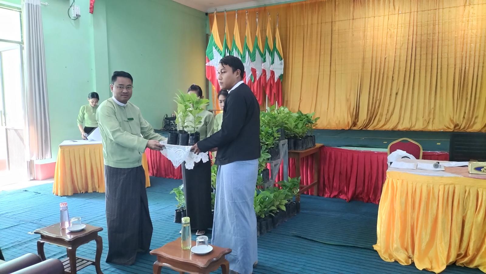 ထို့နောက် မြို့နယ်စီမံခန့်ခွဲရေးနှင့် အုပ်ချုပ်ရေးကော်မတီဥက္ကဋ္ဌ ဦးဥက္ကာသန်းက မြို့နယ်ဌာနဆိုင်ရာများအား မြေနိမ့်ဒေသစိုက် ရိုဘတ်စတာ ကော်ဖီပျိုးပင် (၅၆၉) ပင်အား ထောက်ပံ့ပေးအပ်ခဲ့ကြောင်း သိရသည်။