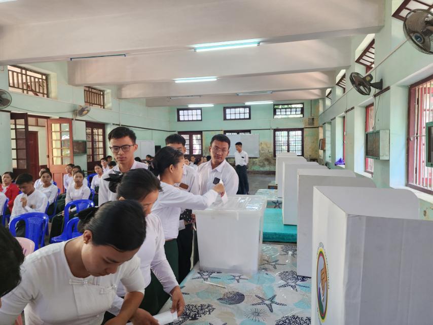 ရန်ကုန်တိုင်းဒေသကြီး၊ အလုံမြို့နယ်၊ စောရန်ပိုင်တောင်ရပ်ကွက်၊ မင်းရဲကျော်စွာလမ်း၊ အ.ထ.က(၃)ကျောင်းရှိ ဟားခါးပညာရေး ဒီဂရီကောလိပ် သီရိရတနာခန်းမ၌ ယနေ့နံနက်ပိုင်းက နေရပ်စွန့်ခွာပြည်သူများ ကြိုတင်ဆန္ဒမဲပေးခဲ့ကြသည်။