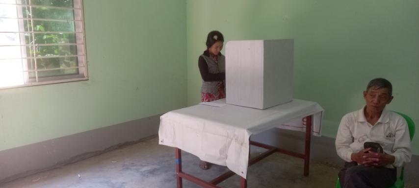 ကြိုတင်ဆန္ဒမဲပေးခြင်းကို ခရိုင်စီမံခန့်ခွဲရေးနှင့်အုပ်ချုပ်ရေးကော်မတီဥက္ကဋ္ဌကြီးကြပ်မှု၊ မြို့နယ်စီမံခန့်ခွဲရေးနှင့်အုပ်ချုပ်ရေးကော်မတီဥက္ကဋ္ဌနှင့်အဖွဲ့ဝင်များ၊ မြို့နယ်ရွေးကောက်ပွဲကော်မရှင်အဖွဲ့ခွဲဥက္ကဋ္ဌနှင့်အဖွဲ့ဝင်များက စီစဉ်ဆောင်ရွက်ပေးခဲ့ရာ သက်ဆိုင်ရာနိုင်ငံရေးပါတီများမှ ပါတီကိုယ်စားလှယ်များရှေ့တွင် ယာယီနေရပ်စွန့်ခွာနေရသူပြည်သူများက လွတ်လပ်စွာကြိုတင်ဆန္ဒမဲပေးခြင်းပြုလုပ်ခဲ့ကြောင်း သိရသည်။