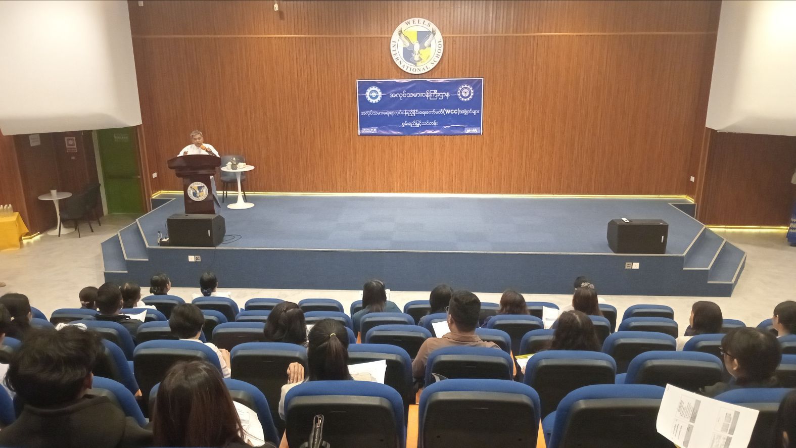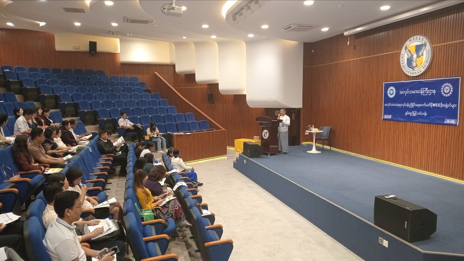 ရန်ကုန်တိုင်းဒေသကြီး၊ မရမ်းကုန်းခရိုင်၊ လှိုင်မြို့နယ်တွင် အလုပ်သမားရေးရာလုပ်ငန်းညှိနှိုင်းရေးကော်မတီ (WCC) အဖွဲ့ဝင်များအား စွမ်းရည်မြှင့်သင်တန်းကို အမှတ် (၁၁) ရပ်ကွက်၊ လှိုင်မြို့နယ်၊ Wella internation School ခန်းမ၌ ယနေ့ နံနက် (၁၀) နာရီအချိန်က ကျင်းပပြုလုပ်ခဲ့ကြောင်း သိရသည်။