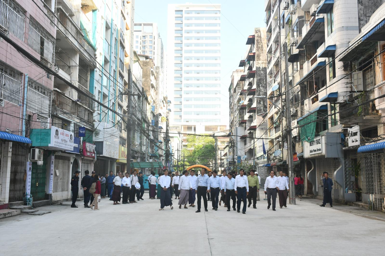 ယင်းနောက် တိုင်းဒေသကြီး ဝန်ကြီးချုပ်နှင့်အဖွဲ့က လမ်းမတော်မြို့နယ်၊ အမှတ် (၄/၅) ရပ်ကွက်၊ လှည်းတန်းလမ်း (အနော်ရထာလမ်းနှင့် မဟာဗန္ဓုလလမ်းကြား) ကွန်ကရစ်လမ်းသစ်အား ဖြတ်သန်းကြည့်ရှုစစ်ဆေးပြီး တက်ရောက်လာကြသူများကို ရင်းရင်းနှီးနှီးနှုတ်ဆက်သည်။