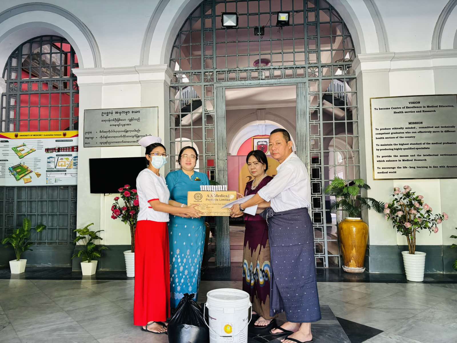 ထိုသို့ဆောင်ရွက်ရာတွင် မြို့နယ်ပြည်သူ့ကျန်းမာရေးဦးစီးဌာနမှ မြို့နယ်ပြည်သူ့ကျန်းမာရေးဦးစီးဌာနမှူး ဒေါက်တာနီနီအေးဦးဆောင်၍ ပြည်သူ့ကျန်းမာရေးဝန်ထမ်းများမှ လမ်းမတော်မြို့နယ်ရှိ အမှတ် (၁၂)ရပ်ကွက်အတွင်းရှိ ဆေးတက္ကသိုလ် (၁) ကျောင်းဝန်းတွင် သွေးလွန်တုပ်ကွေးရောဂါကာကွယ်နှိမ်နင်းရေးအတွက် ဖုံး၊ သွန်၊ လဲ၊ စစ်ပြုလုပ်ခြင်း၊ အဘိတ်ဆေးခတ်ခြင်း၊ ခြင်ဆေးမှုတ်ခြင်းနှင့် ဆေးတက္ကသိုလ် (၁) မှ ဌာနမှူးအား အဘိတ်ဆေးပုံး၊ Bleaching Powder များ၊ ရေသန့်ဆေးပြား(4800) tabs များအား ပေးအပ်ခြင်းနှင့် လက်ကမ်းစာစောင်များ ဖြန့်ဝေခြင်းလုပ်ငန်းများ ဆောင်ရွက်ခဲ့ကြောင်း သိရှိရပါသည်။