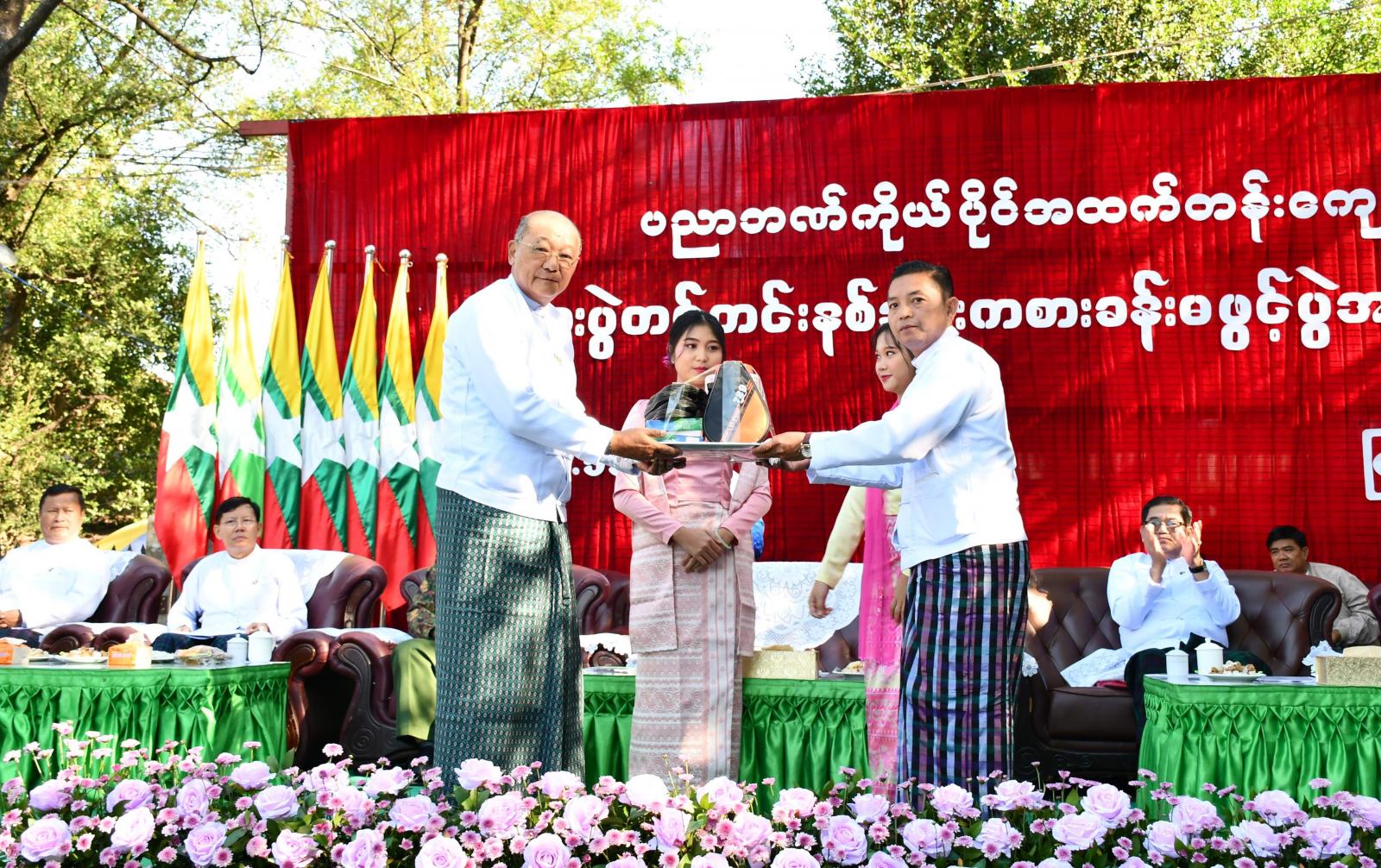 ထို့နောက် ပညာဘဏ်ကိုယ်ပိုင်အထက်တန်းကျောင်း ကျောင်းအုပ်ကြီးက ပြိုင်ပွဲကျင်းပရခြင်းရည်ရွယ်ချက်များကို ရှင်းတင်းတင်ပြပြီး ပြည်ထောင်စုဝန်ကြီးက ကိုယ်ပိုင်အထက်တန်းကျောင်းအတွက် အားကစားပစ္စည်းများကိုလည်းကောင်း၊ ပြည်နယ်ဝန်ကြီးချုပ်က စားပွဲတင်တင်းနစ်ပြိုင်ပွဲအတွက် ချီးမြှင့်ငွေကျပ် (၂၅)သိန်းကို လည်းကောင်း ချီးမြှင့်ပေးအပ်ခဲ့သည်။