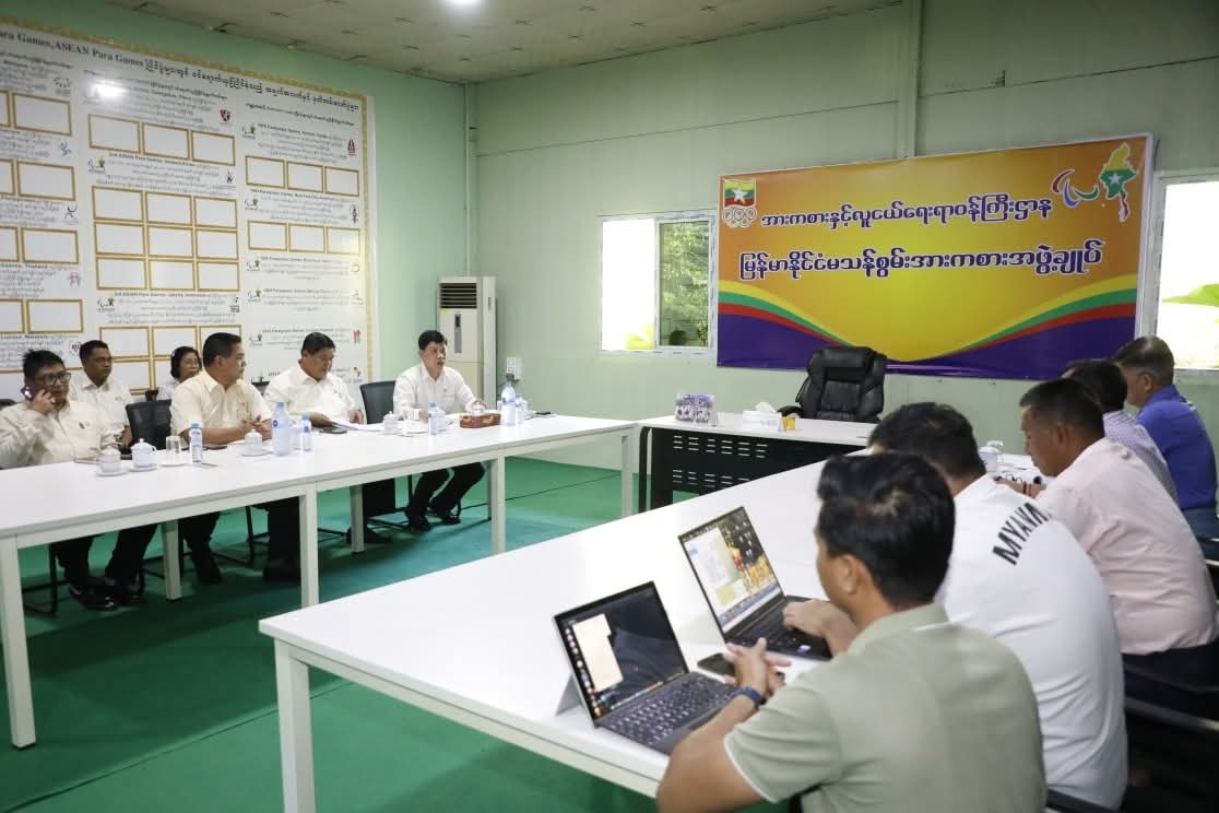 ဆက်လက်ပြီး ညွှန်ကြားရေးမှူးချုပ်နှင့်အဖွဲ့သည် ဒဂုံမြို့သစ်မြောက်ပိုင်းရှိ မြန်မာနိုင်ငံ မသန်စွမ်း အားကစားအဖွဲ့ချုပ်သို့ သွားရောက်၍ တာဝန်ရှိသူများနှင့်တွေ့ဆုံ၍ (၁၃)ကြိမ်မြောက် အာဆီယံ မသန်စွမ်းအားကစားပြိုင်ပွဲသို့ ဝင်ရောက်ယှဉ်ပြိုင်ခြင်းနှင့်ပတ်သက်သည့် ထောက်ပံ့ကြေးကိစ္စ၊ ခြေတုကိစ္စ၊ စားစရိတ်ကိစ္စ၊ ပြိုင်ပွဲဝင်ရောက်ယှဉ်ပြိုင်မှုများ၊ တည်းခိုနေထိုင်ရေးနှင့် သယ်ယူ ပို့ဆောင်ရေးကိစ္စရပ်များနှင့်ပတ်သက်ပြီး ဆွေးနွေးညှိနှိုင်းခဲ့သည်။