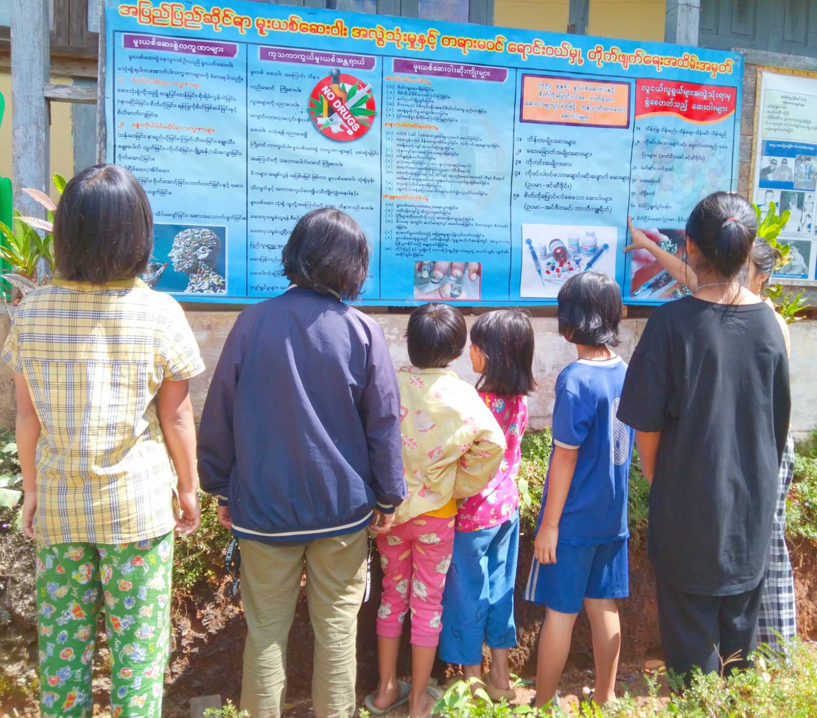 အဆိုပါ အသိပညာပေးနံရံကပ်စာစောင်တွင် ဘိန်းနှင့် မူးယစ်ဆေးသုံးစွဲခြင်းကြောင့် ဖြစ်ပေါ်လာနိုင်သော ရုပ်ပိုင်းနှင့် စိတ်ပိုင်းဆိုင်ရာ အန္တရာယ်များ၊ စိတ်ကြွဆေးပုံစံအမျိုးမျိုး၊ ဘိန်းသီးမှ ဘိန်းဆီခြစ်ယူပုံ၊ စွဲစေတတ်သော မူးယစ်ဆေးဝါးအုပ်စုများ၊ မြန်မာနိုင်ငံသို့ ဘိန်းစတင်ရောက်ရှိလာပုံ၊ မူးယစ်ဆေးဝါးအန္တရာယ် အသိပညာပေး ရုပ်ပြကာတွန်းများ စသည့် အကြောင်းအရာများကို ပြသထားရှိရာ ဒေသနေပြည်သူများနှင့် ကျောင်းသား၊ ကျောင်းသူများက ကြည့်ရှုလေ့လာ မှတ်သားခဲ့ကြကြောင်း သိရသည်။
