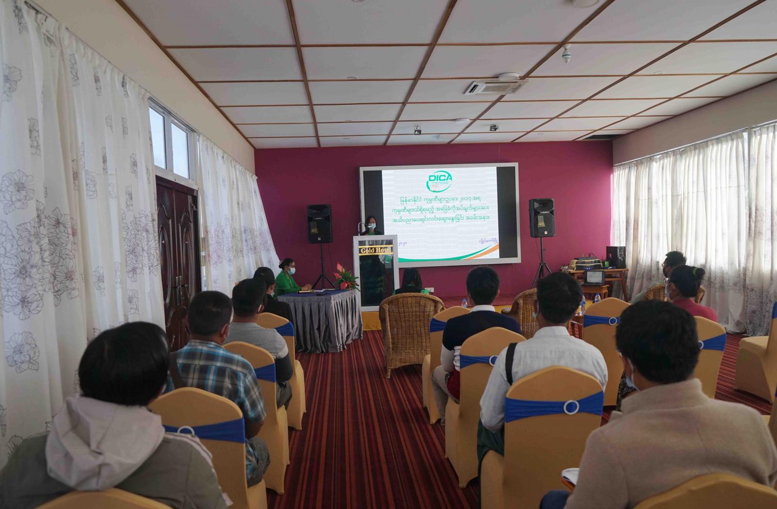 မြန်မာနိုင်ငံ ကုမ္ပဏီများဥပဒေ ၂၀၁၇ အရ ကုမ္ပဏီများအတွက် အခြေခံလိုအပ်သည့် အချက်များအား အသိပညာပေး ရှင်းလင်းဆွေးနွေးခြင်းကို ယမန်နေ့ မွန်းလွဲပိုင်းက လွိုင်ကော်မြို့နယ်၊ နောင်ယား (က)ရပ်ကွက်ရှိ GOLD Hotel ၌ ကျင်းပပြုလုပ်ခဲ့သည်။