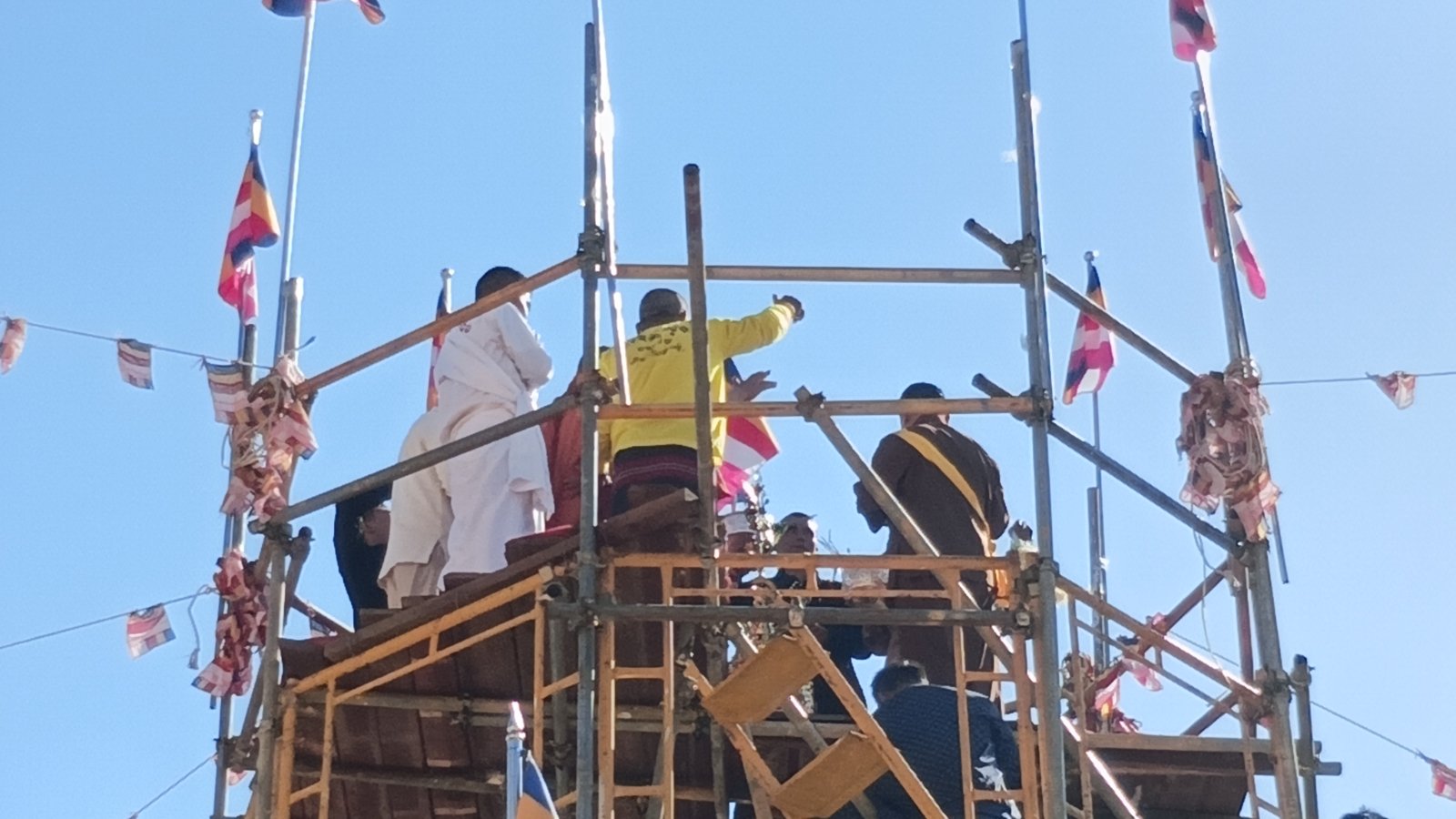 ဆက်လက်ပြီး သံဃာတော်အရှင်သူမြတ်တို့ထံ စိန်ဖူးတော်၊ ငှက်မြက်နားတော်၊ ရွှေထီးတော်အထွဋ်တို့ကို ဆပ်ကပ်လှူဒါန်းခဲ့ကြပြီး မြသုခ၊ တပ်ဦးကျောင်းတိုက်ဆရာတော် အဂ္ဂမဟာသဒ္ဓမ္မဇောတိကဓဇဘဒ္ဒန္တ ဒေါက်တာပညာနန္ဒထံမှ ပရိတ်တရားတော် နာယူခဲ့ကြသည်။