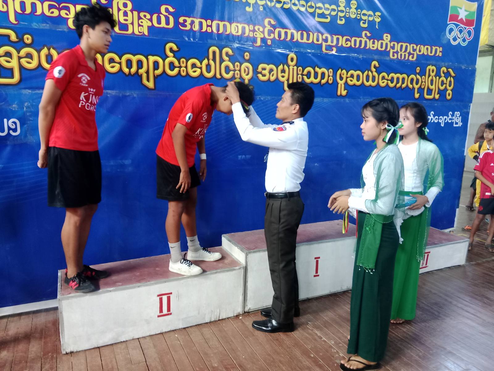 ထို့နောက် အခြေခံပညာကျောင်းပေါင်းစုံ အမျိုးသားဖူဆယ်ဘောလုံးပြိုင်ပွဲ ဆုချီးမြှင့်ပွဲအခမ်းအနားအား ကျင်းပရာ မြို့နယ်စည်ပင်သာယာရေးအဖွဲ့ အမှုဆောင်အရာရှိ ဦးတင်စွမ်က ဂိုးသမားအကောင်းဆုံးကစားသမားဆုရရှိသော (အ-ထ-က) သရက်ချောင်း (ခ) အသင်းမှ မောင်ဒီမင်းဦးအား ဒိုင်းဆုနှင့် ငွေသားဆု ချီးမြှင့်ခြင်း၊ မြို့နယ်စီမံကိန်းရေးဆွဲရေးဦးစီးဌာနမှ လက်ထောက်ညွှန်ကြားရေးမှူး ဒေါ်ခင်မာလာထွန်းက ပွဲစဉ်တစ်လျှောက်အကောင်းဆုံးကစားသမားဆုရရှိသော (အ-ထ-က) သရက်ချောင်း (က) အသင်းမှ မောင်ထင်လင်းဦးအား ဒိုင်းဆုနှင့် ငွေသားဆုချီးမြှင့်ခြင်း၊ ပြိုင်ပွဲတွင် ပထမရရှိသော (အ-ထ-က) သရက်ချောင်း (က) အသင်းနှင့် ဒုတိယရရှိသော (အ-ထ-က) သရက်ချောင်း (ခ) အသင်းတို့မှ အားကစားသမားများအား မြို့နယ်စီမံခန့်ခွဲရေးနှင့် အုပ်ချုပ်ရေးကော်မတီဥက္ကဋ္ဌ ဦးအောင်မြင့်သိန်းနှင့် ကော်မတီဝင်များက တစ်ဦးချင်းလည်ဆွဲဆုများနှင့် ငွေသားဆုများကို လည်းကောင်း၊ ပထမရရှိသော (အ-ထ-က) သရက်ချောင်း (က) အသင်းအား တံခွန်စိုက်ဒိုင်းဆုကိုလည်းကောင်း အသီးသီး ဆုချီးမြှင့်ပေးခဲ့ပြီးနောက် ဆုရရှိသောပြိုင်ပွဲဝင်အသင်းများနှင့် ဌာနဆိုင်ရာတာဝန်ရှိသူများက အမှတ်တရမှတ်တမ်းတင်ဓာတ်ပုံ ရိုက်ကူးခဲ့ကြောင်း သိရသည်။