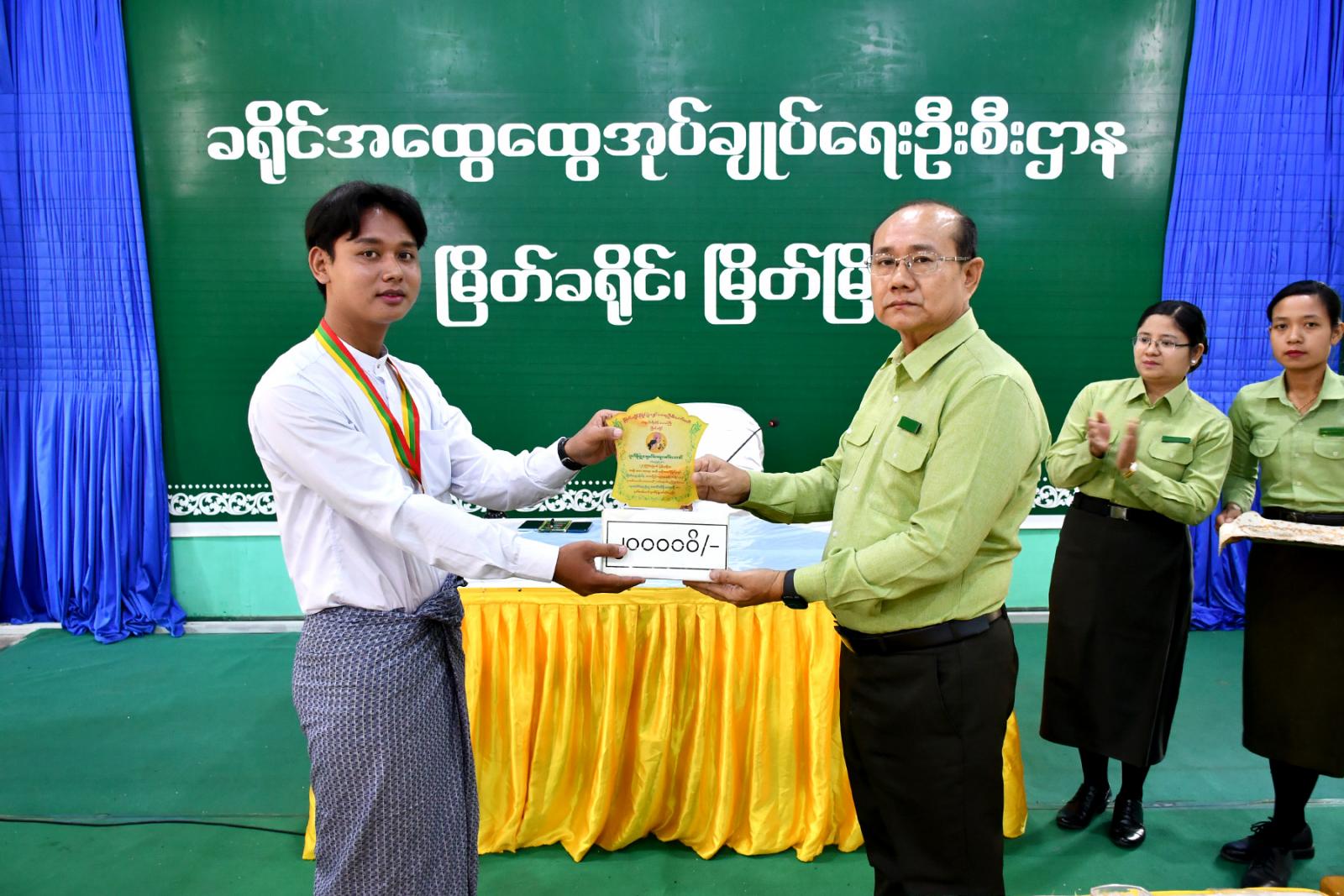 ဂုဏ်ပြုဆုချီးမြှင့်ရာတွင် မြိတ်ခရိုင်စီမံခန့်ခွဲရေးနှင့်အုပ်ချုပ်ရေးကော်မတီဥက္ကဋ္ဌ ဦးမျိုးဦးက ဂုဏ်ပြုအမှာစကားပြောကြားပြီး မြန်မာရိုးရာယဉ်ကျေးမှု အဆို၊အက၊ အရေး၊ အတီး အောင်နိုင်ရေးကြီးကြပ်အဖွဲ့ခေါင်းဆောင် ခရိုင်စီမံခန့်ခွဲရေးနှင့်အုပ်ချုပ်ရေးကော်မတီအဖွဲ့ဝင် ဒေါ်နန်းနန်းက ပြိုင်ပွဲကာလတစ်လျှောက် တွေ့ကြုံခဲ့ရသည့်အတွေ့အကြုံများကို ဆွေးနွေးတင်ပြသည်။