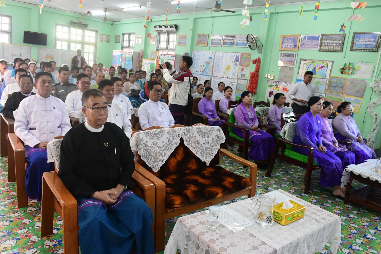 ဆက်လက်၍ ပြည်နယ်ဝန်ကြီးချုပ်နှင့်တာဝန်ရှိသူများသည် သင်တန်းသူဆရာမများအား ရင်းနှီးနွေးထွေးစွာတွေ့ ဆုံနှုတ်ဆက်၍ အားပေးစကားများပြောကြားပြီး ခင်းကျင်းပြသထားသော ကလေးသူငယ်ပြုစုပျိုးထောင်ရေးနှင့်ဖွံ့ဖြိုးရေးဆိုင်ရာသင်ထောက်ကူပစ္စည်းများကို ကြည့်ရှုအားပေးကာ အမှတ်(၂) မူလတန်းကြိုကျောင်းအတွက် အထွေထွေအသုံးစရိတ် ငွေကျပ်(၃) သိန်းကို ပေးအပ်ချီးမြှင့်ခဲ့ကြောင်း သိရသည်။