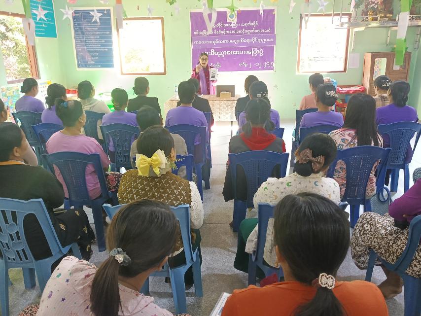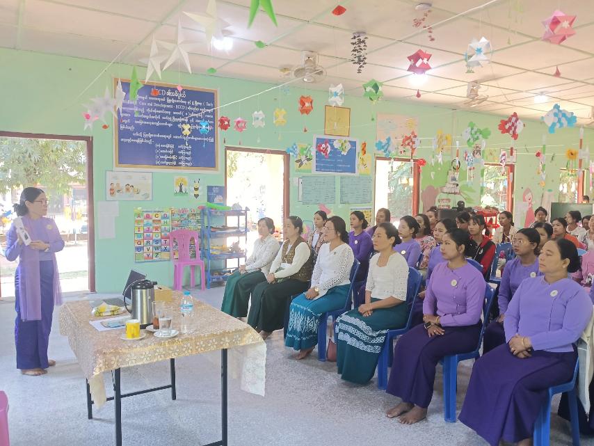 အဆိုပါအခမ်းအနားတွင် မိခင်နှင့်ကလေးစောင့်ရှောက်ရေးအသင်းဥက္ကဋ္ဌ ဒေါ်ငယ်ငယ်အောင်က ကလေးအလုပ်သမား၏ အဓိပ္ပာယ်၊ အလုပ်လုပ်နိုင်သည့် ကလေးသူငယ်၏ အသက်အရွယ် အပိုင်းအခြားနှင့်ပတ်သက်ပြီး ပြဌာန်းထားရှိသည့် ဥပဒေများ၊ ရပိုင်ခွင့်များ၊ ကလေးအလုပ်သမားပပျောက်ရေးဆိုင်ရာ အသိပညာပေးအဖြစ် အရွယ်မတိုင်မီ ကလေးအလုပ်သမားဘဝသို့ မရောက်စေရန် မိဘများမှ သတိထားရမည့်အချက်များ၊ ကျောင်းနေအရွယ်တွင် ပညာရေးကို ဦးစားပေးသင့်ကြောင်း၊ မိဘနှင့် သားသမီးဆက်ဆံရေးတွင် သိရှိသင့်သည့် အကြောင်းအရာများ၊ လမ်းမှန်ပေါ်ရောက်ရှိစေရန် ထိန်းကျောင်းပေးရမည့် အချက်များကို ရှင်းလင်းဆွေးနွေးခဲ့သည်။ ထို့နောက် မူလတန်းကြိုကျောင်းမှ သားငယ်၊ သမီးငယ်များ၏ မိဘအုပ်ထိန်းသူများအား အသိပညာဗဟုသုတရရှိစေရန်အတွက် ကလေးအလုပ်သမားပပျောက်ရေး အသိပညာပေးလက်ကမ်းစာစောင်များ ဖြန့်ဝေပေးခဲ့သည်။