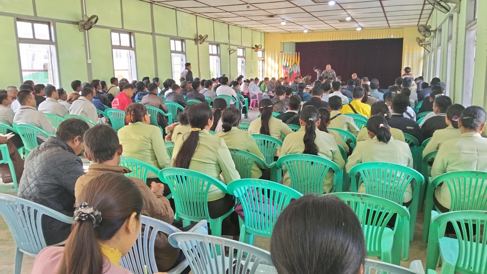 ရှေးဦးစွာခရိုင်စီမံခန့်ခွဲရေးနှင့် အုပ်ချုပ်ရေးကော်မတီဥက္ကဋ္ဌ အောင်ဇော်ထက်က အဖွင့်အမှာစကားပြောကြားရာ ပါတီစုံဒီမိုကရေစီအထွေထွေရွေးကောက်ပွဲ ပြုလုပ်မည့်ရက်မှာ နီးကပ်လာ ပြီဖြစ်သည့်အတွက် ဌာနဆိုင်ရာအကြီးအကဲများအနေဖြင့် မိမိတာဝန်ကျရာကျေးရွာများရှိ ရပ်/ကျေးကော်မရှင်အဖွဲ့ခွဲများနှင့် ပေါင်းစပ်ညှိနှိုင်းဆောင်ရွက်ထားရှိရန် လိုအပ်ကြောင်း၊ နိုင်ဝင်ဘာလ(၂၁) ရက်နေ့မှစ၍ ဒုတိယအကြိမ် မဲဆန္ဒရှင်စာရင်းများ ကပ်ထားကြေညာထားပြီး ဖြစ်သည့်အတွက် မှန်ကန်မှုရှိစေရေး ရပ်/ကျေးကော်မရှင်အဖွဲ့ခွဲ အတွင်းရေးမှူးများအနေဖြင့် အလေးထားဆောင်ရွက်ရန်လိုအပ်ကြောင်း၊ ဒီဇင်ဘာလ(၂၈)ရက်နေ့တွင် ပြုလုပ်မည့်ပါတီစုံ ဒီမိုကရေစီအထွေထွေရွေး ကောက်ပွဲအောင်မြင်စေရေး အမျိုးသားရေးတာဝန်တစ်ရပ်အနေဖြင့် ဆောင်ရွက်ရန်လိုအပ်ကြောင်း ပြောကြားခဲ့သည်။