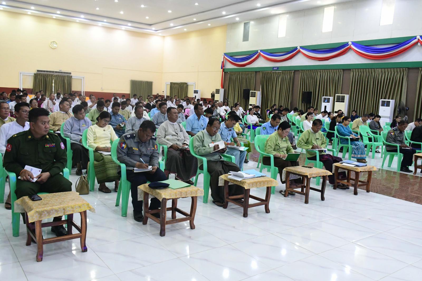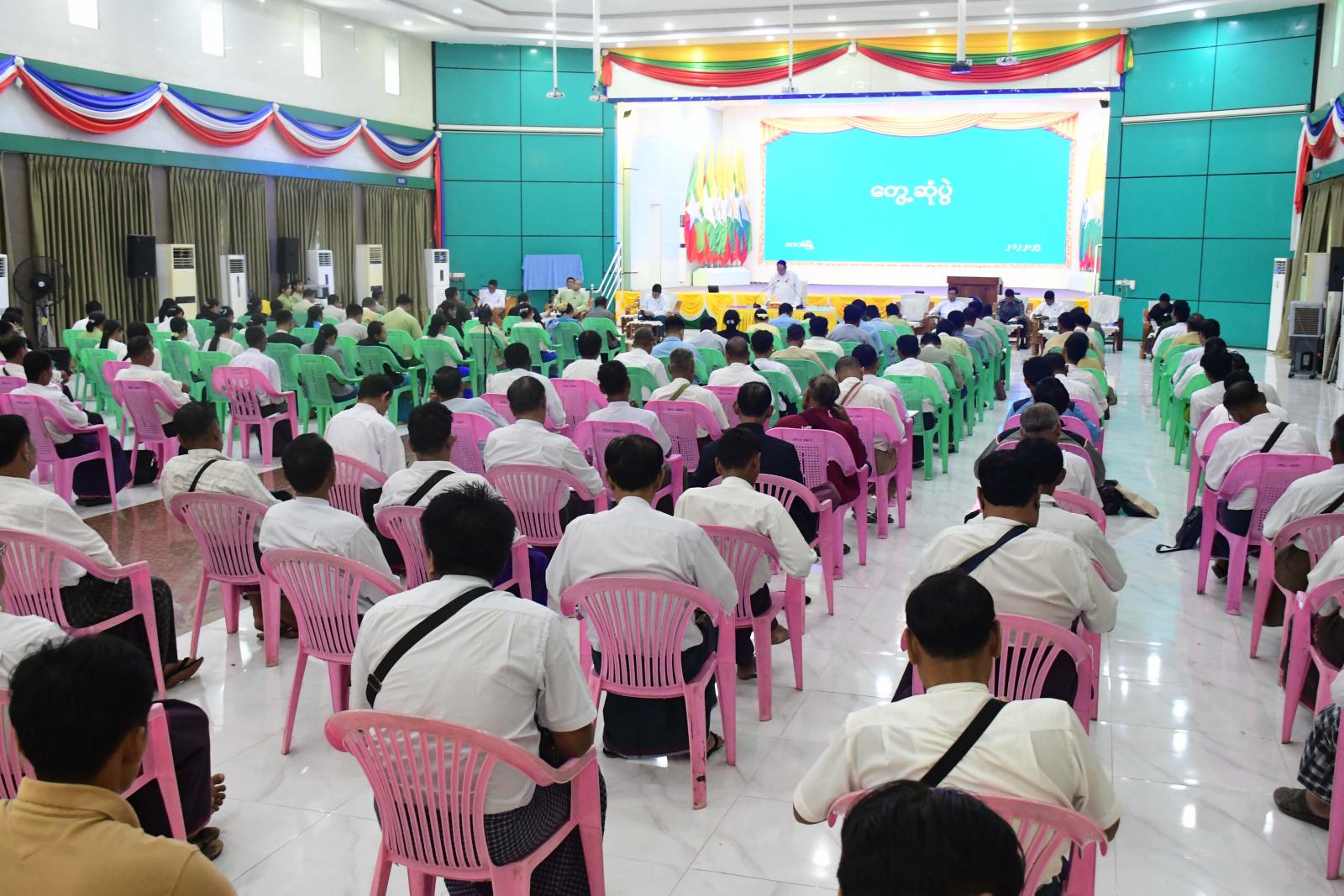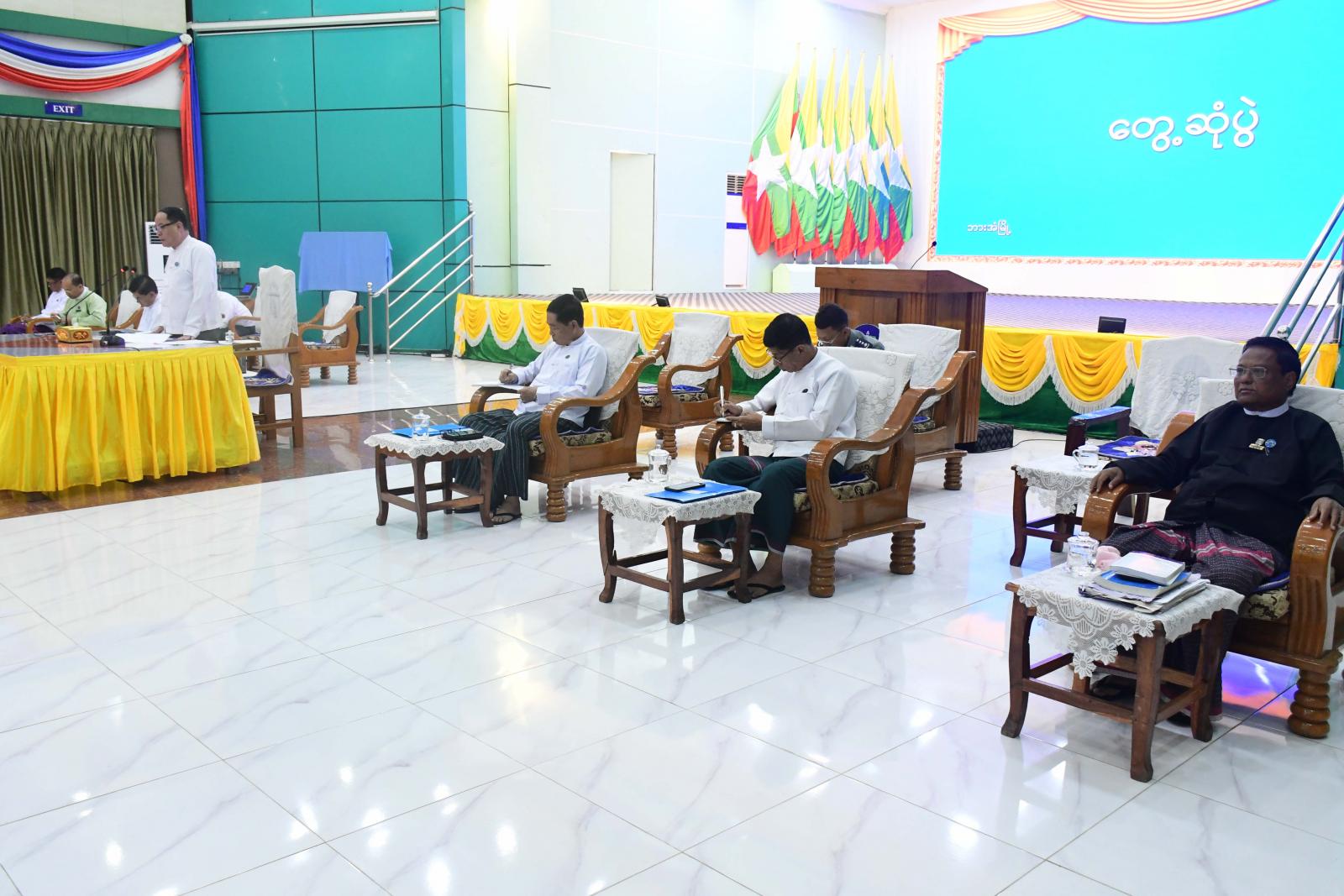 ထို့နောက် ပြည်နယ်အစိုးရအဖွဲ့ဝင်များက ရွေးကောက်ပွဲအောင်မြင်စွာကျင်းပနိုင်ရေး ကြိုတင်ပြင်ဆင်ဆောင် ရွက်ရာတွင် စနစ်တကျရှိစေရေး၊ ကြိုတင်မဲပေးနိုင်ရေး၊ စိုက်ပျိုးမွေးမြူရေးလုပ်ငန်းများဖွံ့ဖြိုးတိုးတက်ရေးဆိုင်ရာကိစ္စရပ် များကိုဆွေးနွေးပြောကြားပြီး သက်ဆိုင်ရာဌာနများက ယခင်အပတ်အစည်းအဝေးဆုံးဖြတ်ချက်များအပေါ် လိုက်နာ ဆောင်ရွက်ပြီးစီးမှုအခြေအနေများကို ရှင်းလင်းတင်ပြကြကာ ရပ်ကွက်/ကျေးရွာအုပ်စု အုပ်ချုပ်ရေးမှူးများက သက်ဆိုင်ရာ ရပ်ကွက်/ကျေးရွာများအလိုက် မဲစာရင်းမှန်ကန်ရေးလုပ်ငန်းများဆောင်ရွက်မှုအခြေအနေ၊ ပညာရေး၊ ကျန်းမာရေး၊ စိုက်ပျိုးရေရရှိရေး၊ လမ်း/တံတားအစရှိသည့် ဒေသဖွံ့ဖြိုးရေးလုပ်ငန်းများဆောင်ရွက်ရာတွင် ပြည်နယ် အစိုးရအဖွဲ့မှ ဖြည့်ဆည်းဆောင်ရွက်ပေးစေလိုသည့်ကိစ္စရပ်များကို ဆွေးနွေးတင်ပြကြရာ ပြည်နယ်ဝန်ကြီးချုပ်က သက်ဆိုင်ရာဌာနများနှင့်ပေါင်းစပ်ညှိနှိုင်းဖြည့်ဆည်းပေးခဲ့ကြောင်း သိရသည်။