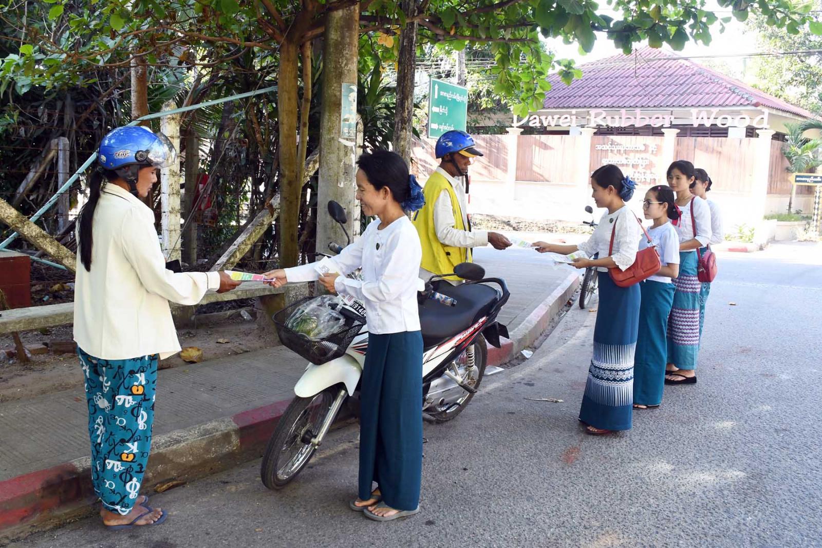 တနင်္သာရီတိုင်းဒေသကြီး၊ထားဝယ်မြို့၌ ၂၀၂၅ ခုနှစ် ဒီဇင်ဘာ(၂၈)ရက်တွင်ကျင်းပမည့် ပါတီစုံဒီမိုကရေစီအထွေထွေ ရွေးကောက်ပွဲကို မဲပေးပိုင်ခွင့်ရှိသူ မဲဆန္ဒရှင်ပြည်သူများအားလုံး ပါဝင်ဆန္ဒမဲပေးနိုင်ရေးအတွက် ပြန်ကြားရေးနှင့်ပြည်သူ့ ဆက်ဆံရေးဦးစီးဌာနမှ ဝန်ထမ်းများက “ဒို့အတူတူမဲပေးကြမယ်” သတင်းစကားလက်ကမ်းစာစောင်များကို ယမန်နေ့ ညနေပိုင်းတွင် ပြန်ကြားရေးနှင့်ပြည်သူ့ဆက်ဆံရေးဦးစီးဌာန လောင်းလုံးမြို့နယ်၊ မေတ္တာမြို့ရုံးမှ ဝန်ထမ်းများက လူစည်ကားရာနေရာများ၊ ထားဝယ်ပညာရေးဒီဂရီကောလိပ်မှ ဆရာ/ဆရာမများနှင့်ကျောင်းသား/ကျောင်းသူများကို ဝေငှပေးခဲ့သည်။
