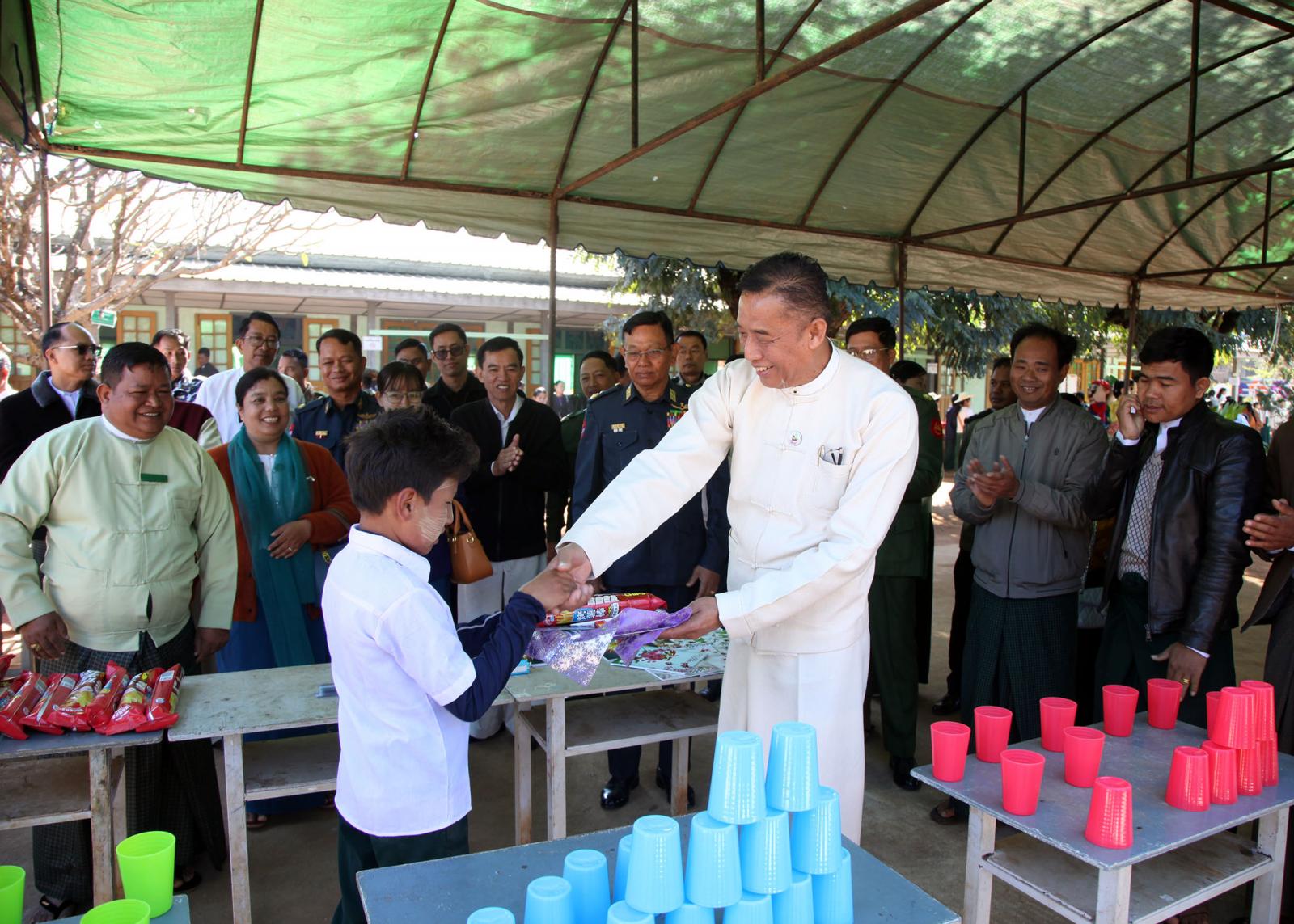 ဦးစွာ ပြည်နယ်သယံဇာတရေးရာဝန်ကြီး ဦးစိုင်းလိတ်၊ အရှေ့ပိုင်းလေတပ်ကွပ်ကဲမှုဌာနချုပ်၊ ကွပ်ကဲမှုဌာနချုပ်မှူး ဗိုလ်ချုပ် စိုးအောင်၊ နမ့်စန်တပ်နယ်မှူး ဗိုလ်မှူးချုပ် စွမ်းလှိုင်မင်း၊ ခရိုင်စီမံခန့်ခွဲရေးနှင့် အုပ်ချုပ်ရေးကော်မတီဥက္ကဋ္ဌ ဦးသက်နိုင်နှင့် ခရိုင်ပညာရေးမှူး ဦးကျော်နိုင်သွင်တို့က စာကြည့်တိုက်များဖွံ့ဖြိုးတိုးတက်ရေးနှင့် စာဖတ်ရှိန်မြှင့်တင်ရေးပွဲတော်ကို ဖဲကြိုးဖြတ်ဖွင့်လှစ်ကြပြီး ဘင်ခရာအဖွဲ့နှင့် ပန်းဖွားအဖွဲ့အား ဂုဏ်ပြုချီးမြှင့် ငွေများပေးအပ်ချီးမြှင့်သည်။