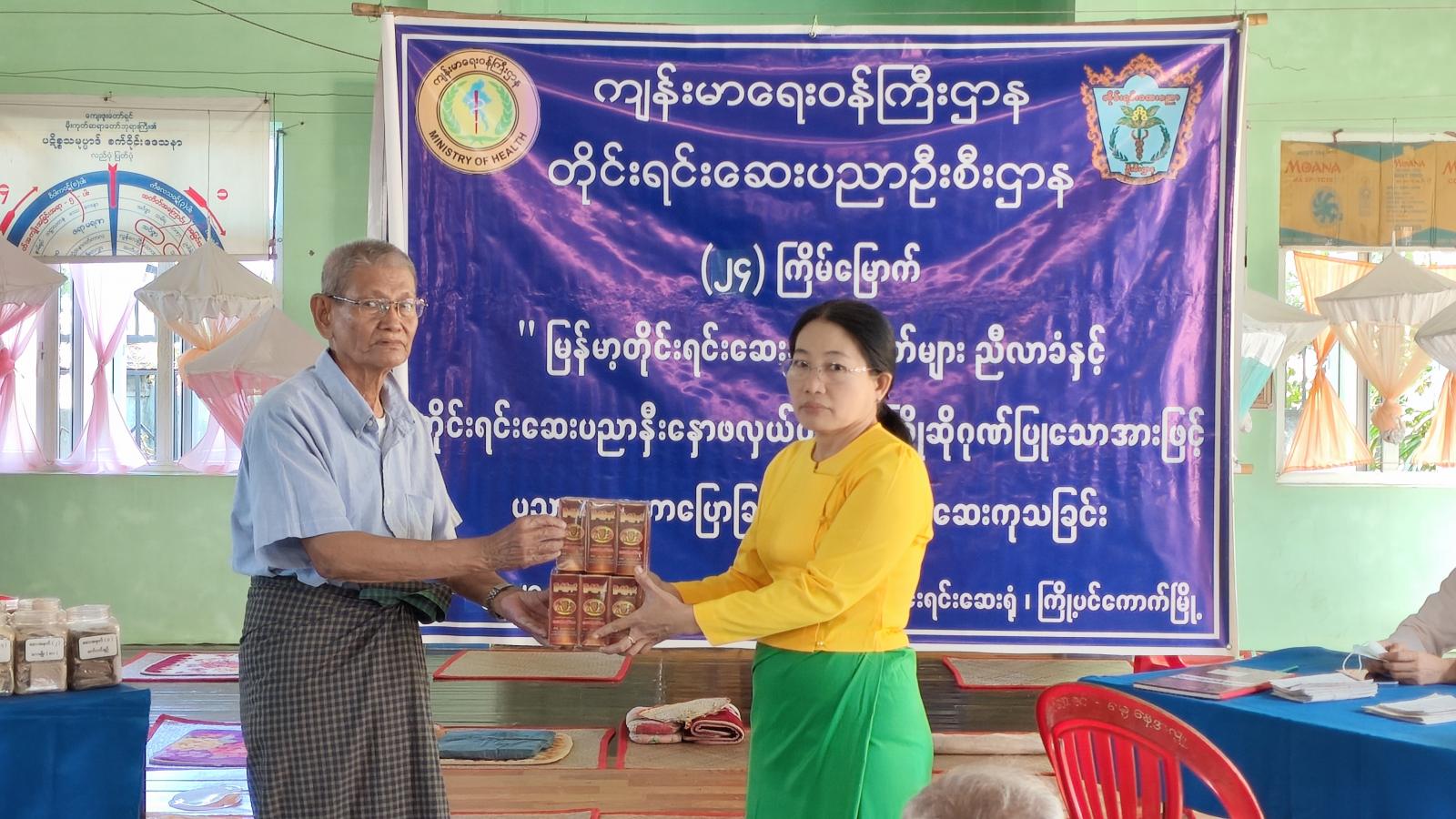 ရှေးဦးစွာ မြို့နယ် ၁၆ ခုတင်ဆံ့တိုင်းရင်း ဆေးရုံအုပ်ကြီး ဒေါ်နှင်းထိုက်တိုးက(၂၄)ကြိမ်မြောက် မြန်မာ့တိုင်းရင်းဆေးသမားတော်များ ညီလာခံနှင့် တိုင်းရင်းဆေးပညာနှီးနှောဖလှယ်ပွဲ အထိမ်းအမှတ်အနေဖြင့် ကွင်းဆင်းကုသပေးရခြင်းဖြစ်ကြောင်း အဘိုးအဘွားများ၏ ကျန်းမာရေးလိုအပ်ချက်များကို ပွင့်လင်းစွာပြောကြား၍ ဆေးဝါးကုသမှုခံယူစေလိုကြောင်း တိုးတက်လာသောခေတ်နှင့်အညီ မြန်မာ့တိုင်းရင်းဆေးပညာသည်လည်း တိုးတက်လာပါကြောင်း မိမိတို့၏ ရောဂါများကို ယုံကြည်စိတ်ချစွာ ကုသစေလိုကြောင်းပြောကြားပြီး ကျန်းမာရေးစောင့်ရှောက်မှုများ ဆောင်ရွက်ပေးခဲ့ ရွှေသမင်ဆေးတိုက်က လှူဒါန်းသော မြန်မာ့တိုင်းရင်းဆေးများကိုလည်း လှူဒါန်းပေးခဲ့ကြောင်း သိရသည်။