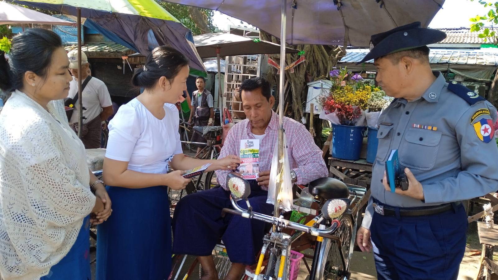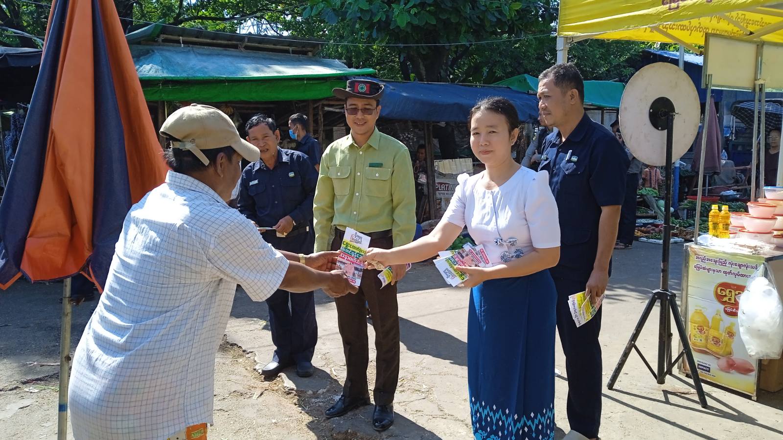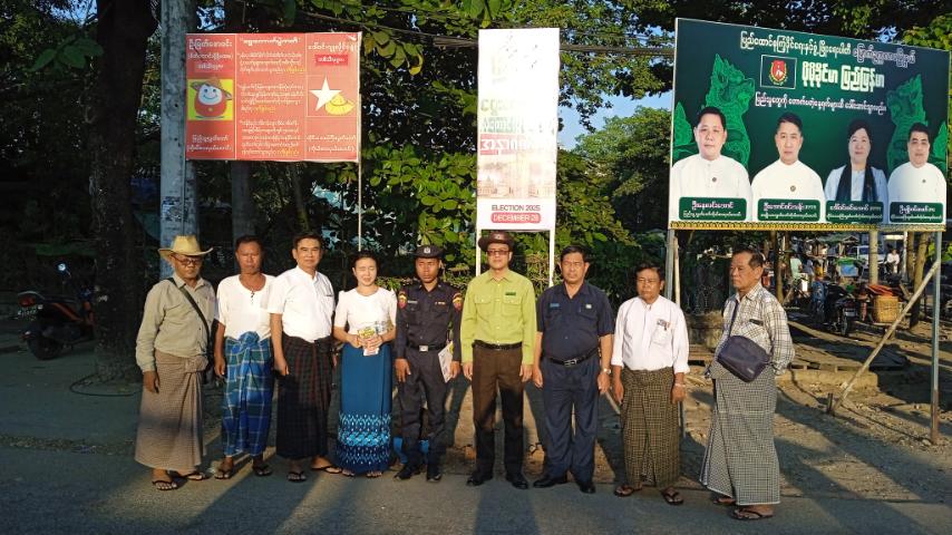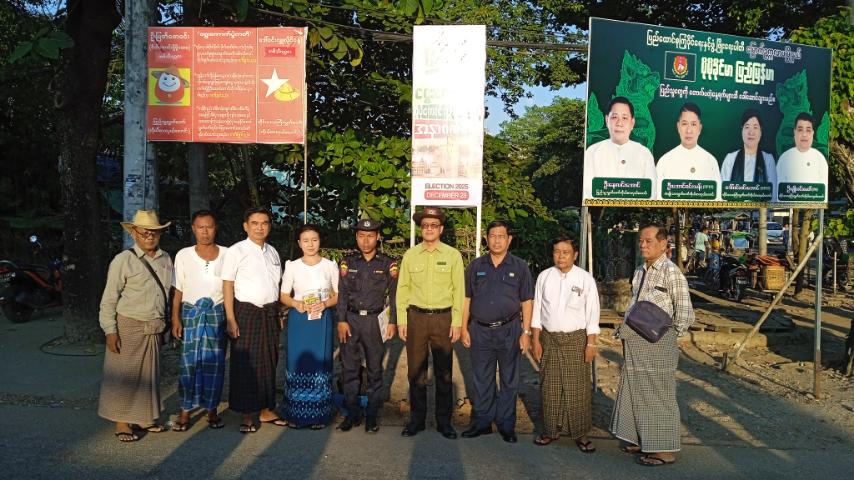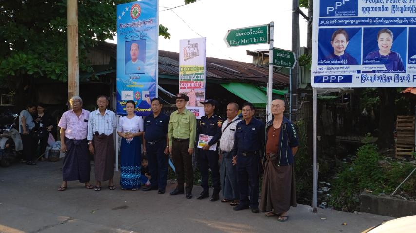 ထိုသို့ ဆောင်ရွက်ကြရာတွင် မြို့နယ်စီမံခန့်ခွဲရေးနှင့် အုပ်ချုပ်ရေးကော်မတီဥက္ကဋ္ဌ ဦးမိုးသူနှင့် အဖွဲ့၀င်များ၊ မြို့နယ်ပြန်ကြားရေးနှင့်ပြည်သူ့ဆက်ဆံရေးဦးစီးဌာန၊ မြို့နယ်မီးသတ်ဦးစီးဌာန၊ မြို့နယ်စည်ပင်သာယာရေးအဖွဲ့နှင့် ဌာနဆိုင်ရာများ၊ ရပ်ကွက်အုပ်ချုပ်ရေးမှူးနှင့် တာ၀န်ရှိသူများက မကြာမီကျင်းပမည့် ပါတီစုံဒီမိုကရေစီအထွေထွေရွေးကောက်ပွဲတွင် ပြည်သူအားလုံးပါဝင်၍ ဆန္ဒမဲပေးနိုင်ရေးအသိပညာပေးနှိုးဆော်သည့် "ဒို့အတူတူမဲပေးကြမယ်" မြေစိုက်ဘုတ်များ စိုက်ထူခြင်းနှင့် လက်ကမ်းစာစောင်များကို လမ်းဆုံလမ်းခွများ၊ ခရီးသည်မော်တော်ယာဉ်လိုင်းများရှိ ပြည်သူများ၊ ဈေးများရှိ ဈေးရောင်းဈေးဝယ်လာကြသူများနှင့် ဒေသခံပြည်သူများများထံသို့ စုပေါင်း၍ ဖြန့်ဝေပေးခဲ့ကြသည်။