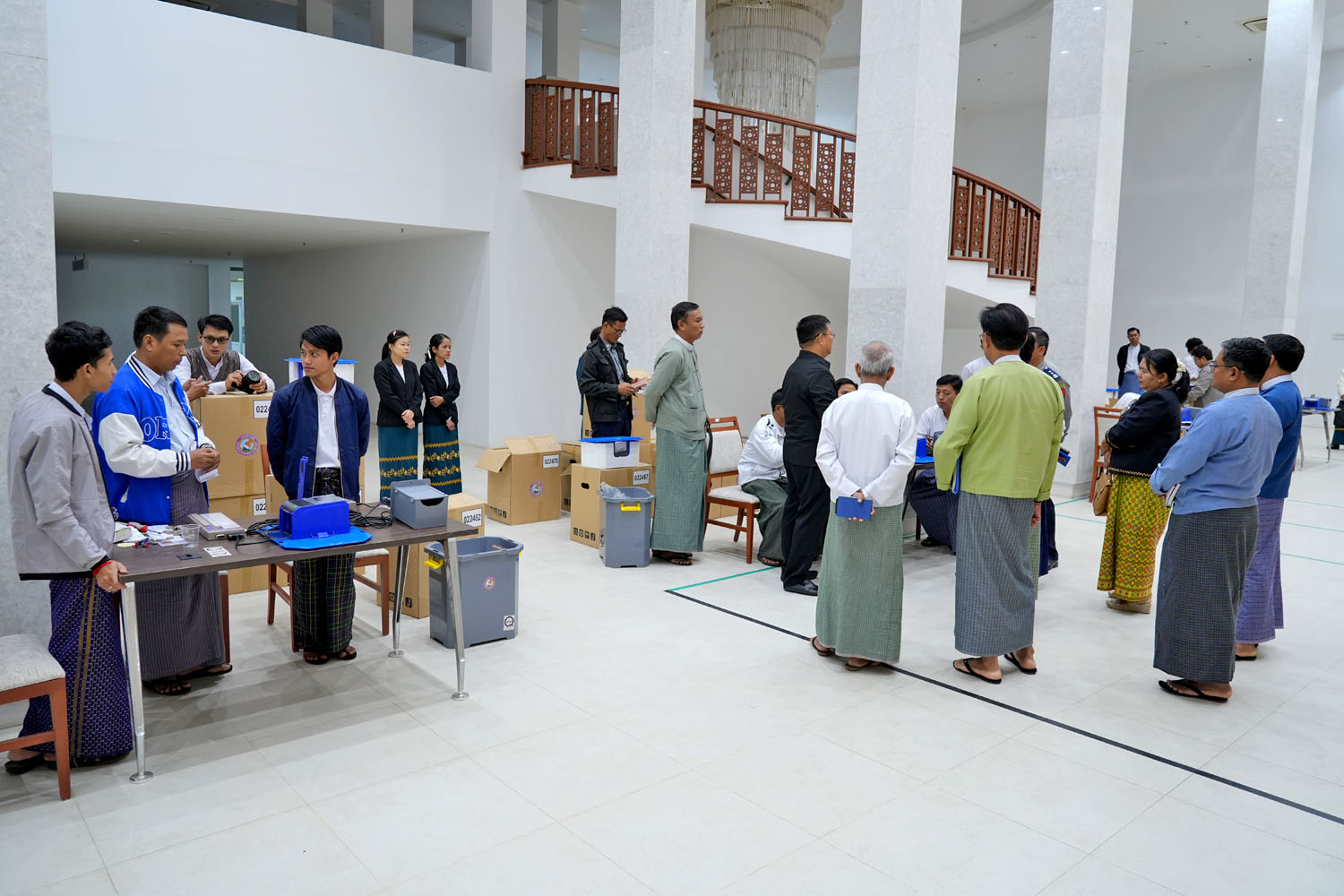 အစည်းအဝေးတွင် ပြည်ထောင်စုရွေးကောက်ပွဲကော်မရှင်အဖွဲ့ဝင် ဦးအောင်လွင်ဦးက ၂၈ - ၁၂ - ၂၀၂၅ ရက်နေ့တွင် ပထမအကြိမ် ကျင်းပပြုလုပ်မည့် ပါတီစုံဒီမိုကရေစီအထွေထွေရွေးကောက်ပွဲတွင် လွှတ်တော်အလိုက်အသုံးပြုမည့် MEVM မဲပေးစက်များကို နည်းပညာကျွမ်းကျင်သူများဖြင့် စစ်ဆေးခြင်း၊ ပြင်ဆင်ခြင်းများ ဆောင်ရွက်ပြီးစီးမှုအခြေအနေ၊ ရွေးကောက်ပွဲ ကျင်းပပြုလုပ်မည့် မြို့နယ်များမှ ဆောင်ရွက်ရမည့်လုပ်ငန်းများ၊ မြို့နယ်များနှင့် ရပ်ကွက်/ကျေးရွာအုပ်စုမဲရုံများတွင် MEVM မဲပေးစက်များကို စစ်ဆေးဆောင်ရွက်ရန်နှင့် တိုင်းဒေသကြီး၊ ခရိုင်၊ မြို့နယ်အလိုက် ကွပ်ကဲရေးရုံးများဖွင့်၍ ကွပ်ကဲရေးရုံးများတွင် အရန် MEVM မဲပေးစက်များ ထားရှိမည့်အခြေအနေများကို ရှင်းလင်းပြောကြားသည်။
