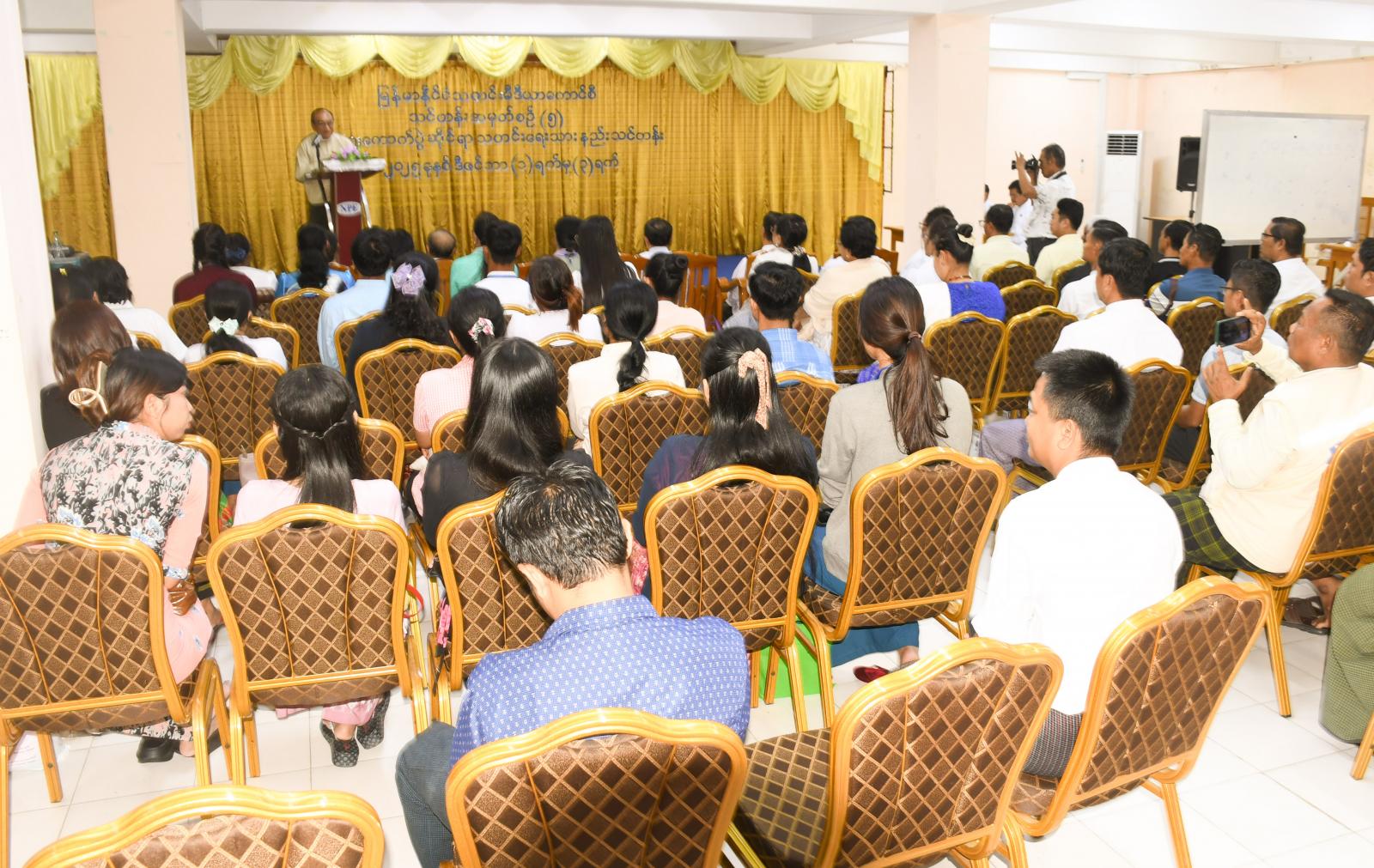 မြန်မာနိုင်သတင်းမီဒီယာကောင်စီ သတင်းမီဒီယာဖွံ့ဖြိုးရေးကော်မတီက စီစဉ်သည့် သတင်းမီဒီယာသင်တန်းအမှတ်စဉ် (၅) ရွေးကောက်ပွဲဆိုင်ရာ သတင်းရေးသားနည်း သင်တန်းဆင်းပွဲကို ယမန်နေ့ မွန်းလွဲပိုင်းတွင် ရန်ကုန်မြို့၊ ဗိုလ်တထောင်မြို့နယ် သိမ်ဖြူလမ်းရှိ သတင်းနှင့် စာနယ်ဇင်းလုပ်ငန်း (ရုံးချုပ်) ရွှေဥဒေါင်းခန်းမ၌ ကျင်းပသည်။