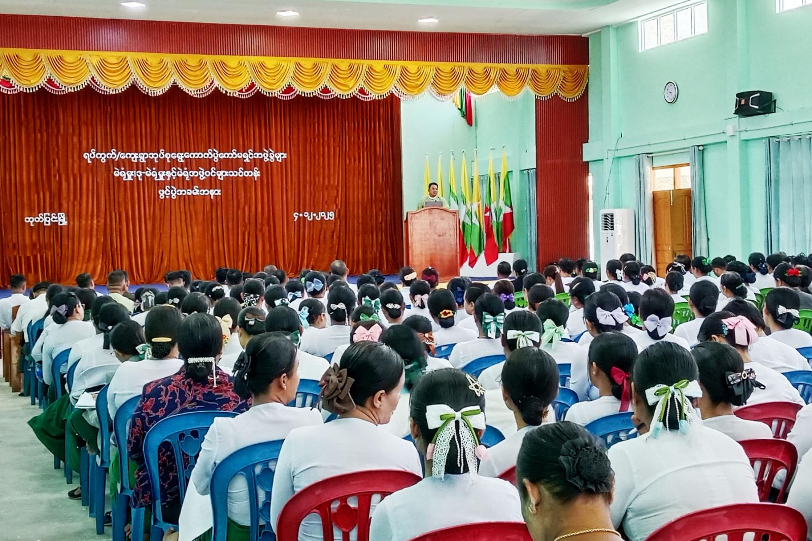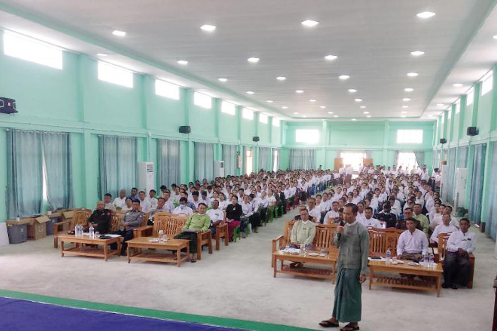 အဆိုပါသင်တန်းအား နိုဝင်ဘာလ ၂၆ ရက်နေ့ကဖွင့်လှစ်ပြီး ဖြစ်သော်လည်း မဲရုံများတွင် လုပ်ငန်းလစ်ဟာမှုမရှိအောင် ဒုတိယအကြိမ် ဌာနဆိုင်ရာများနှင့်အတူ ပြန်လည်ဖွင့်လှစ်ပို့ချခြင်း ဖြစ်ကြောင်း၊ အရေးကြီးသည့်အခန်းကဏ္ဍမှ ပါဝင်ရသည့် မဲရုံမှူး၊ ဒုမဲရုံမှူး၊ မဲစာရင်းစစ်ဆေးသူ၊ ထိန်းချုပ်စက်ကိုင်တွယ်သူနှင့် မဲရုံလုံခြုံရေးအစရှိသည့် မဲရုံအဖွဲ့ဝင်များက တာဝန်ယူဆောင်ရွက်ရွက်ရမည့်လုပ်ငန်းများကို သက်ဆိုင်ရာ လွှတ်တော်ရွေးကောက်ပွဲဥပဒေ၊ နည်းဥပဒေများ၊ ညွန်ကြားချက်နှင့်အညီ ရှင်းလင်းပြတ်သားစွာ သိရှိနားလည် ဆောင်ရွက်နိုင်ကြစေရန်အတွက် သင်တန်းကိုစိတ်ပါဝင်စားစွာဖြင့် တက်ရောက်ပြီး မိမိတို့၏တာဝန်ကို ကျေပွန်စွာထမ်းဆောင် စေလိုပါကြောင်း ရပ်ကွက်/ကျေးရွာရွေးကောက်ပွဲကော်မရှင်အဖွဲ့ခွဲဥက္ကဋ္ဌနှင့်အတွင်းရေးမှူးများအနေဖြင့် ရပ်ကွက်/ကျေးရွာရွေးကောက်ပွဲလမ်းညွှန်လက်စွဲပါအတိုင်း ဆောင်ရွက်ကြစေလိုကြောင်း၊ မိမိတို့တာဝန်ကျရာ မဲရုံအလိုက် ပါတီစုံဒီမိုကရေစီအထွေထွေရွေးကောက်ပွဲကို အောင်မြင်အောင် ဆောင်ရွက်ကြစေလိုကြောင်း ပြောကြားသည်။