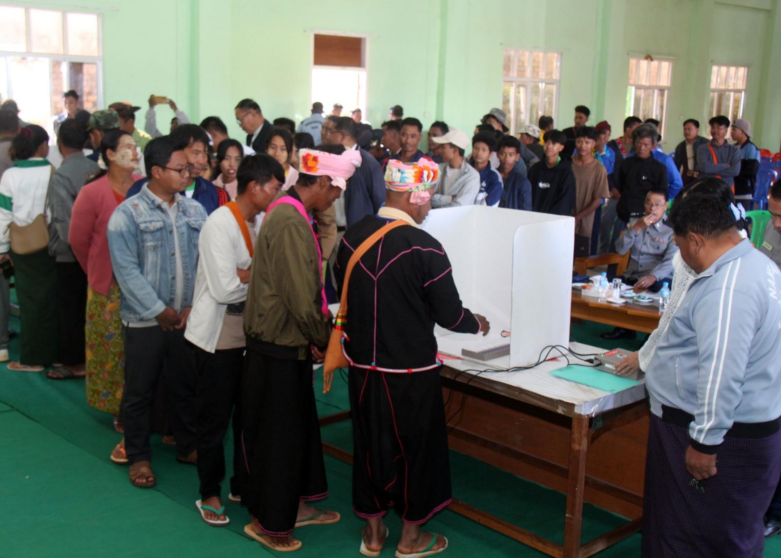 ရှမ်းပြည်နယ်(တောင်ပိုင်း)၊ နမ့်စန်ခရိုင်၊ နမ့်စန်မြို့နယ်တွင် မြန်မာအီလက်ထရောနစ်မဲပေးစက်ဆိုင်ရာ အသိပညာပေးခြင်းနှင့် လက်တွေ့စမ်းသပ်မဲပေးခြင်းကို ယနေ့ နံနက် ၉ နာရီက အမှတ်(၂)ရပ်ကွက်ရှိမြို့ နယ်ခန်းမတွင် ကျင်းပခဲ့ရာ ခရိုင်စီမံခန့်ခွဲရေးနှင့်အုပ်ချုပ်ရေးကော်မတီဥက္ကဋ္ဌ ဦးသက်နိုင်နှင့် အဖွဲ့ဝင်များ၊ မြို့နယ်စီမံခန့်ခွဲရေးနှင့်အုပ်ချုပ်ရေးကော်မတီဥက္ကဋ္ဌ ဦးနေမျိုးထွန်းနှင့် ခရိုင်၊ မြို့နယ်အဆင့်ဌာနဆိုင်ရာအကြီးအကဲများ၊ ဝန်ထမ်းများ၊ မြို့နယ်ရွေးကောက်ပွဲကော်မရှင်အဖွဲ့ခွဲဥက္ကဋ္ဌ ဦးအောင်ဆယ်နှင့် အဖွဲ့ဝင်များ၊ မြို့နယ်ရွေးကောက်ပွဲအရာရှိ ဒေါ်မျိုးမျိုးအောင်နှင့် ဝန်ထမ်းများ၊ နိုင်ငံရေးပါတီကိုယ်စားလှယ်များ၊ ရပ်/ကျေးအုပ်ချုပ်ရေးမှူးများနှင့် ရပ်ကွက်နှင့် ကျေးရွာများမှ ပြည်သူများ တက်ရောက်ခဲ့ကြသည်။