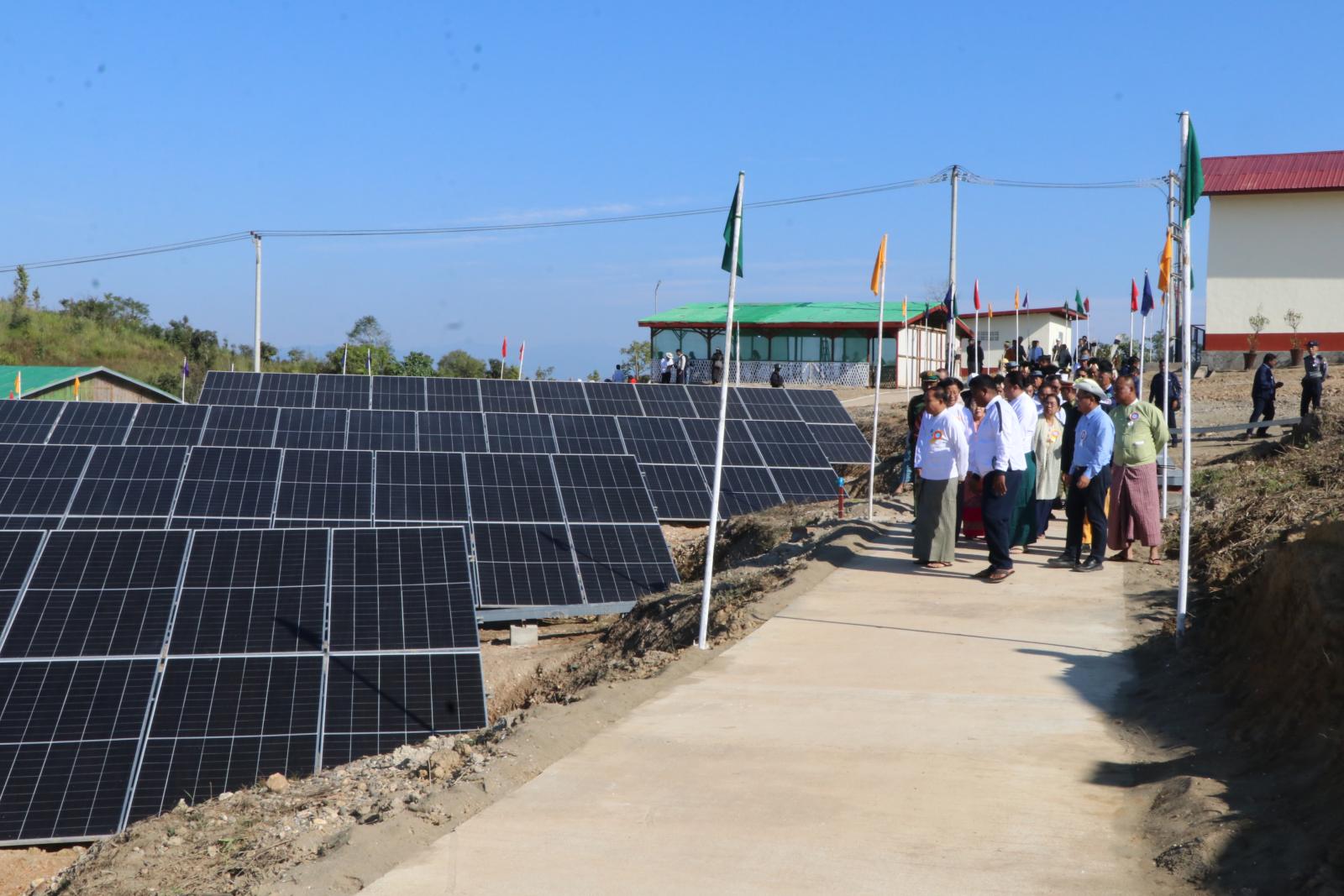 ထို့နောက် တိုင်းဒေသကြီး ဝန်ကြီးချုပ် ဦးမြတ်ကျော်၊ တိုင်းဒေသကြီး သယံဇာတ ရေးရာဝန်ကြီး ဦးတင်သန်းဝင်း၊ တိုင်းဒေသကြီး လျှပ်စစ်ဓါတ်အားဖြန့်ဖြူးရေးလုပ်ငန်း အင်ဂျင်နီယာမှူးကြီး ဦးဇာနည်တင်မိုး၊ ခရိုင်စီမံခန့်ခွဲရေးနှင့်အုပ်ချုပ်ရေးကော်မတီဥက္ကဋ္ဌ ဦးအောင်ဇော်ထက်၊ လောကသစ္စာကုမ္ပဏီမှ တာဝန်ရှိသူတစ်ဦးတို့က ၁ မဂ္ဂါဝပ် ဆိုလာ ဓာတ်အားပေးစက်ရုံအား ဖဲကြိုးဖြတ်ဖွင့်လှစ်ပေးကြသည်။