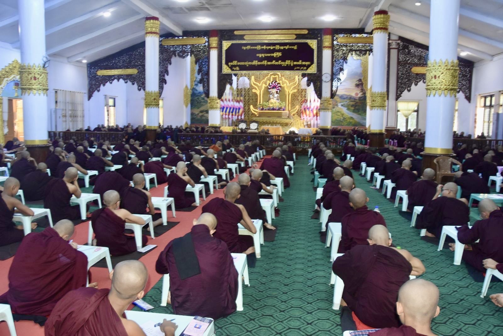 စာမေးပွဲဖြေဆိုကြရာတွင် သာသနာ့မဏ္ဍိုင်ပါဠိတက္ကသိုလ်ကျောင်းတိုက်၌ တတိယအဆင့် သံဃာခုံအမှတ်(၁)မှ (၂၂၃)အထိ၊ ဒုတိယအဆင့် သံဃာခုံအမှတ်(၁)မှ (၅၅၆)အထိ၊ ဗုဒ္ဓအသံဓမ္မဗိမာန်အပေါ်ထပ်၌ ပထမအဆင့်သံဃာ ခုံအမှတ် (၁)မှ (၆၉၇) အထိ၊ ဗုဒ္ဓအသံဓမ္မဗိမာန်အောက်ထပ်၌ ပထမအဆင့် သံဃာခုံအမှတ် (၆၉၈)မှ (၁၂၇၇) အထိ၊ မွန်ဓမ္မာရုံအပေါ်ထပ်၌ ပထမအဆင့် သံဃာခုံအမှတ် (၁၂၇၈)မှ (၁၄၀၀) အထိ၊ ရွှေကျောင်းတော် ကျောက်ပန်းတောင်းဓမ္မာရုံနှင့် ဓမ္မရွှေရည်ဓမ္မာရုံတို့၌ ပထမအဆင့် သီလရှင် ခုံအမှတ် (၁)မှ (၂၂၀)အထိ၊ ဒုတိယအဆင့် သီလရှင် ခုံအမှတ် (၁)မှ (၁၅၈)အထိ၊ တတိယအဆင့် သီလရှင် ခုံအမှတ် (၁)မှ (၇၁)အထိနေရာ အသီးသီးခွဲ၍ ဖြေဆိုကြရာ စာမေးပွဲကြီးကြပ်ရေးဆရာတော်များနှင့် အကျိုးတော်ဆောင်များက စနစ်တကျ ကြီးကြပ်ပေးလျက်ရှိကြောင်း သိရသည်။