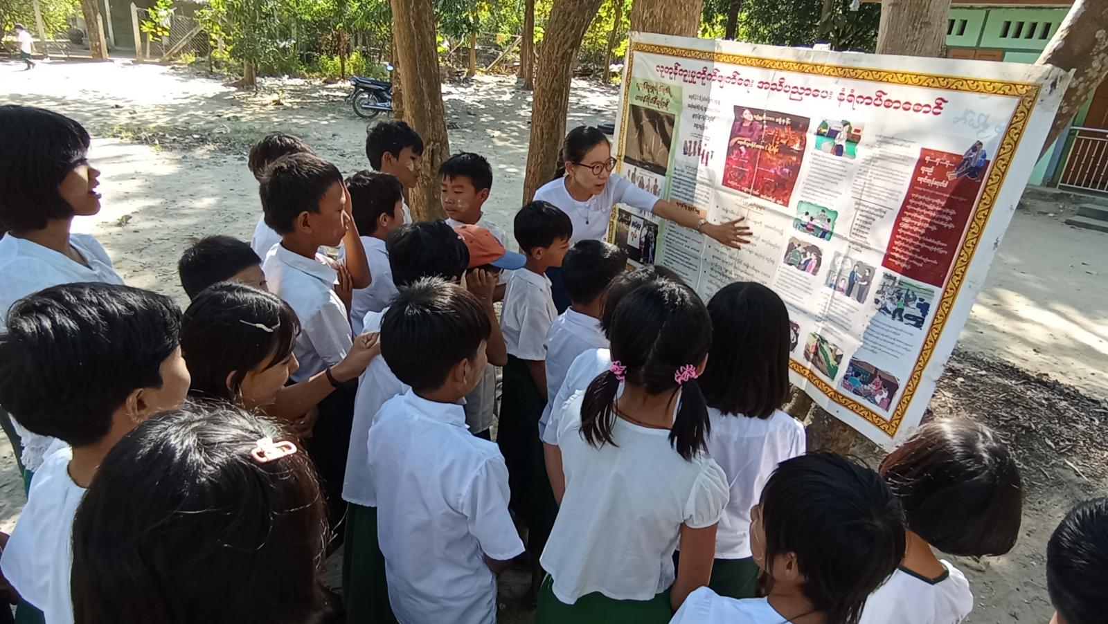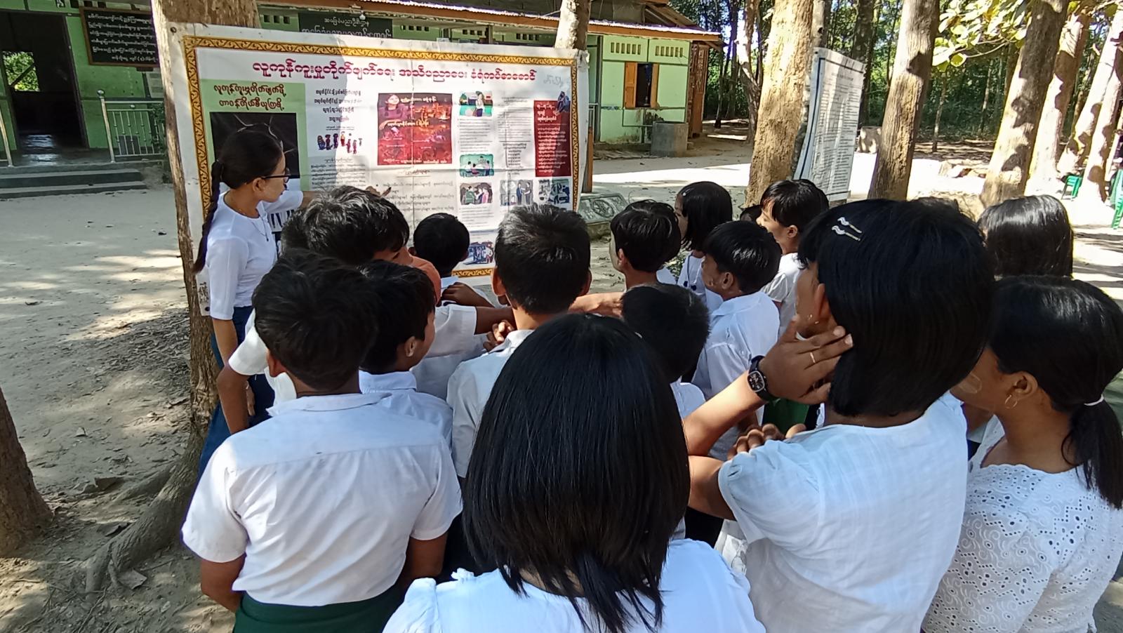 ထို့နောက် ပြန်ကြားရေးနှင့်ပြည်သူ့ဆက်ဆံရေးဦးစီးဌာနမှ ခင်းကျင်းပြသထားသော မသန်စွမ်းသူများ၏ အခွင့်အရေးများဆိုင်ရာ အသိပညာပေး နံရံကပ်စာစောင်နှင့် သုတ၊ ရသ စာအုပ် စာစောင်များအား ကျောင်းသား/ကျောင်းသူများက စိတ်ပါဝင်စားစွာဖြင့် ကြည့်ရှုလေ့လာခဲ့ကြကြောင်း သိရှိရသည်။