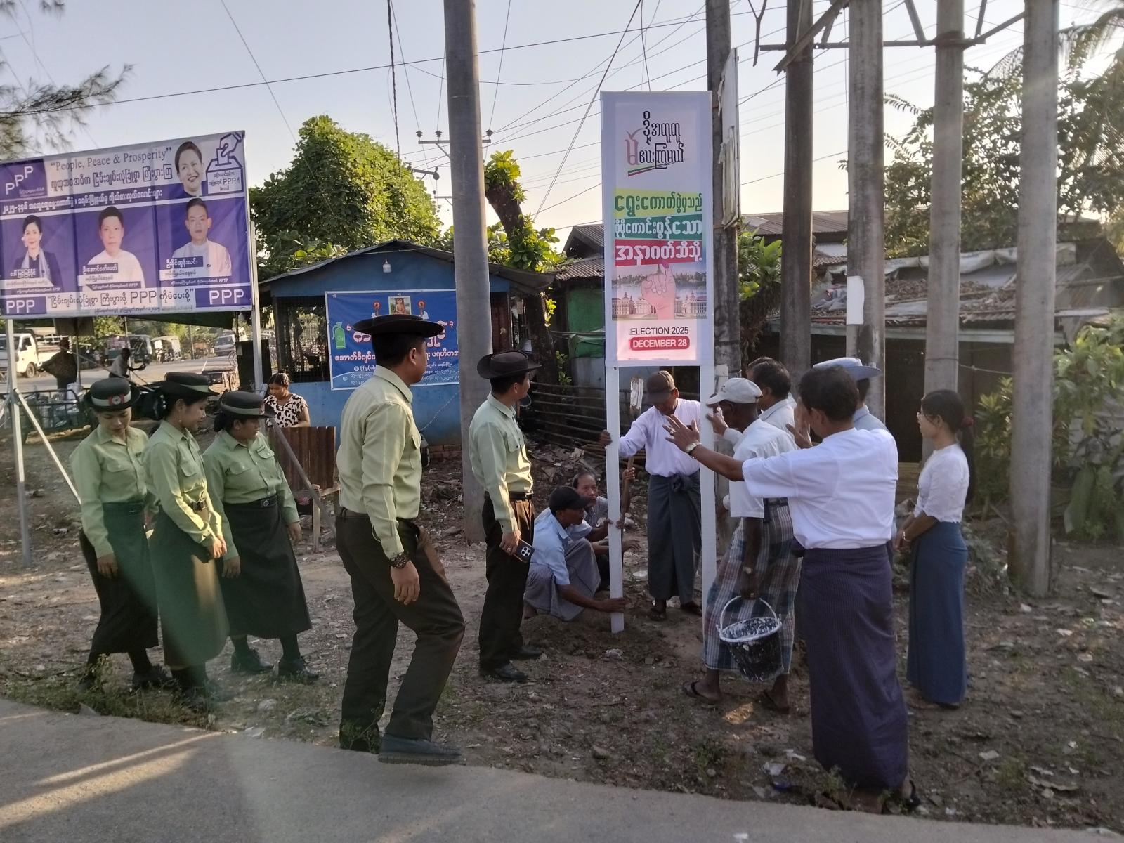 ထိုသို့ ဆောင်ရွက်ကြရာတွင် Billboard များအား မြို့နယ်လူစည်ကားရာနေရာ ၁၀ နေရာတွင် မြို့နယ်စီမံခန့်ခွဲရေးနှင့် အုပ်ချုပ်ရေးကော်မတီဥက္ကဋ္ဌ ဦးအောင်ရဲနှင့် အဖွဲ့၀င်များ၊ မြို့နယ်ပြန်ကြားရေးနှင့်ပြည်သူ့ဆက်ဆံရေးဦးစီးဌာန၊ မြို့နယ်စည်ပင်သာယာအဖွဲ့နှင့် ဌာနဆိုင်ရာများ၊ ရပ်ကွက်အုပ်ချုပ်ရေးမှူးနှင့် တာ၀န်ရှိသူများက မကြာမီကျင်းပမည့် ပါတီစုံဒီမိုကရေစီအထွေထွေရွေးကောက်ပွဲတွင် ပြည်သူအားလုံးပါဝင်၍ ဆန္ဒမဲပေးနိုင်ရေး အသိပညာပေးနှိုးဆော်သည့် “ဒို့အတူတူမဲပေးကြမယ်” Billboard များ စိုက်ထူပေးခဲ့ကြောင်း သိရသည်။